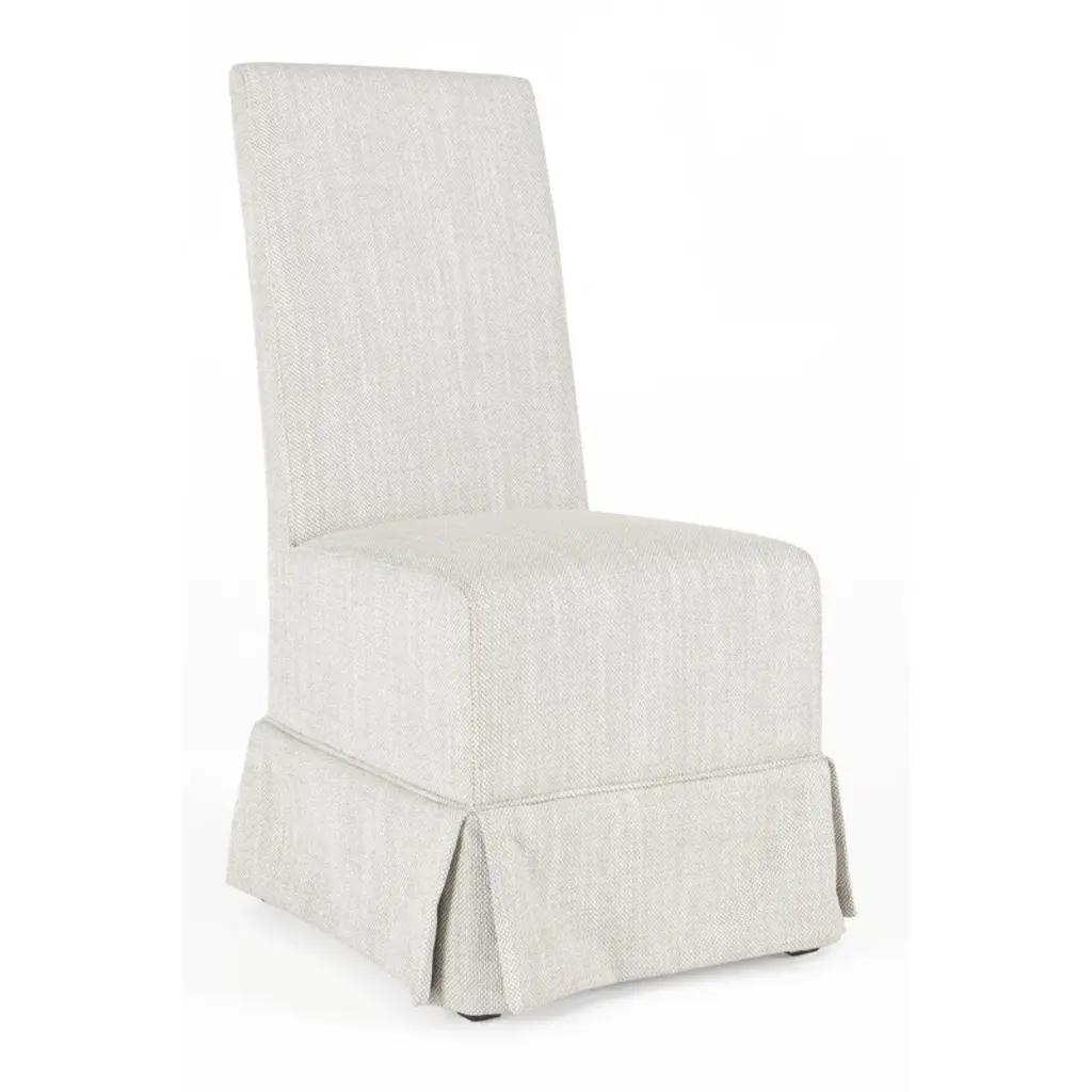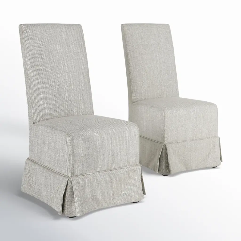 Give your dining space a fresh, airy look with this set of two dining chairs featuring clean lines and durable polyester-blend upholstery. The classic silhouette and neutral hue complement a variety of styles from coastal to modern while non-removeable covers and a tight seat maintain the chair's tailored aesthetic.
