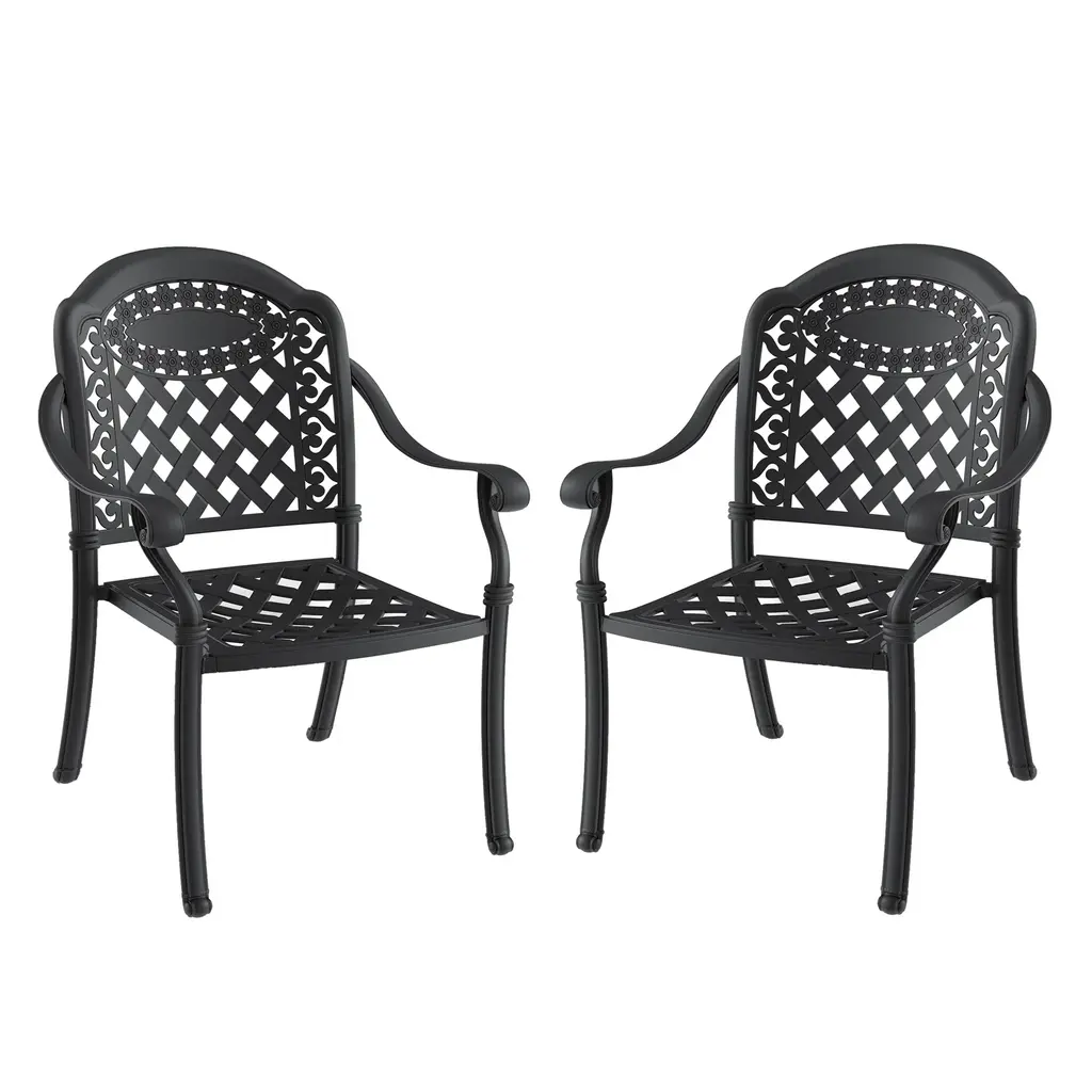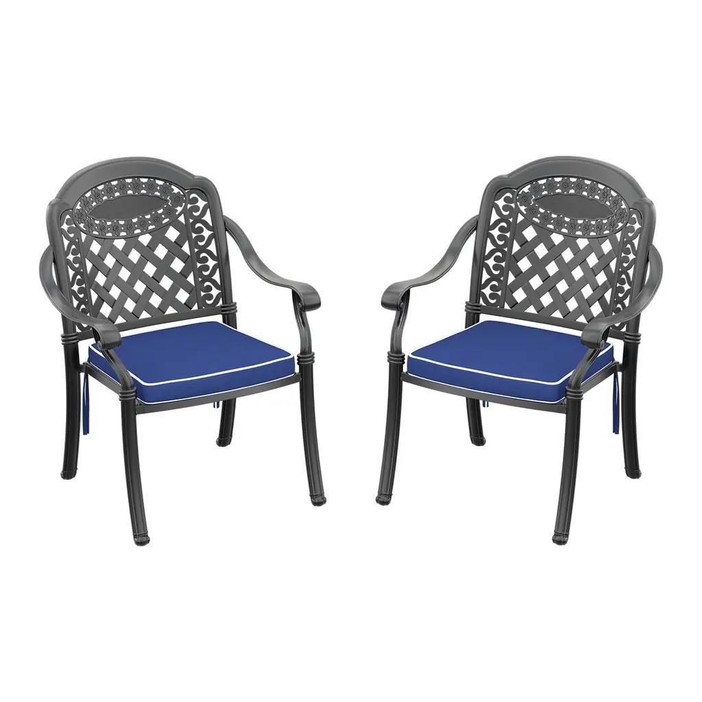 Cast Aluminum Patio Chairs Set Of 2 Dining Chairs With Random Color Cushions - Black