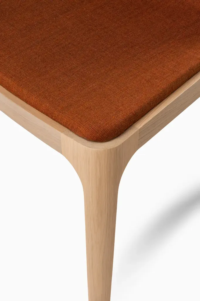 Cast is a chair combines a ash wood frame with a fabric-upholstered seat for added comfort. Featuring a clean silhouette and smooth tactile contrast, it suits dining rooms or workspaces with a design-led focus. Made in Portugal with expert joinery and durable upholstery.Cast is a very adaptable piece that arises from the ambition of creating a simple chair based on two premises: it could fit any nice table and was to be manufactured in solid wood. It is a sturdy piece whose structure is ingeniously determined by the seat itself, giving it a classic and versatile look. Whether you have it in your house at the dining table, in a restaurant or at a hotel room, this chair will stand the test of time for its classic beauty and timeless aesthetic. The chair is available in various kinds of wood – beech, ash, oak and walnut – and can be upholstered in fabric or leather.