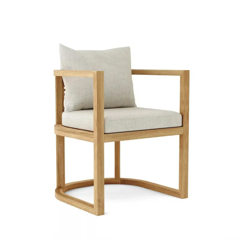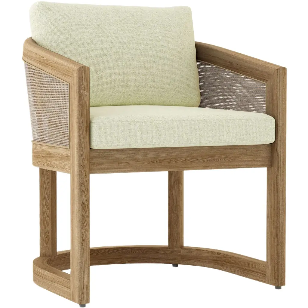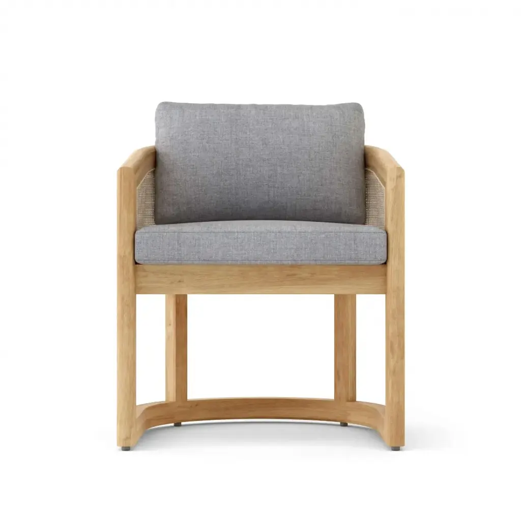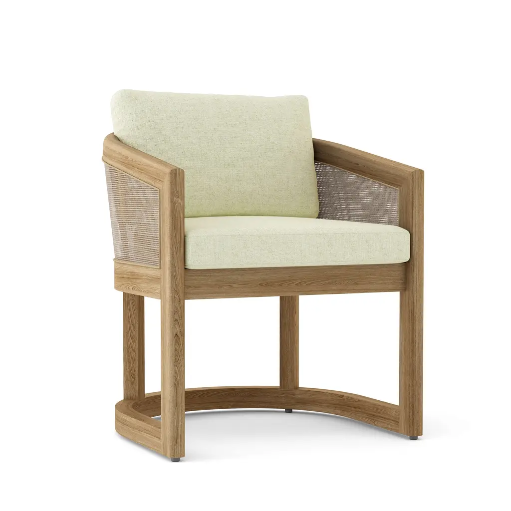 Expertly crafted and shaped to exquisite design the Catania Dining Armchair made of premium solid unfinished teak and synthetic rattan is the perfect dining armchair for outdoor use. Featuring 2 ½” thick cushions from Sunbrella Fabrics, take a seat in comfort and lean back, as you dine and enjoy the outdoors. Pairs perfectly with the Catania Dining Table or Catania Extension Dining Table.