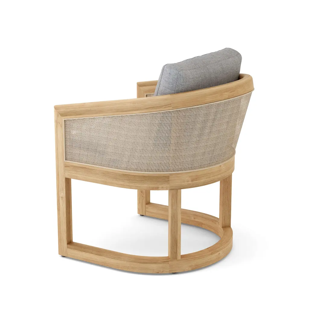 Expertly crafted and shaped to exquisite design the Catania Dining Armchair made of premium solid unfinished teak and synthetic rattan is the perfect dining armchair for outdoor use. Featuring 2 ½" thick cushions from Sunbrella Fabrics, take a seat in comfort and lean back, as you dine and enjoy the outdoors. Pairs perfectly with the Catania Dining Table or Catania Extension Dining Table.