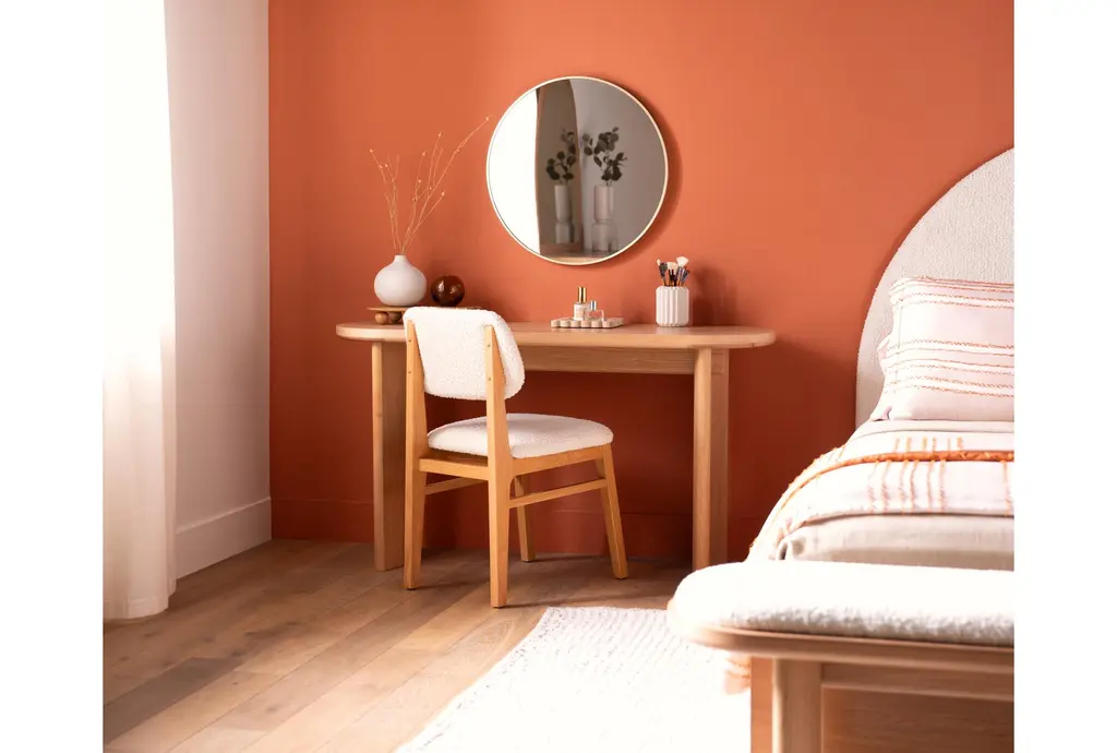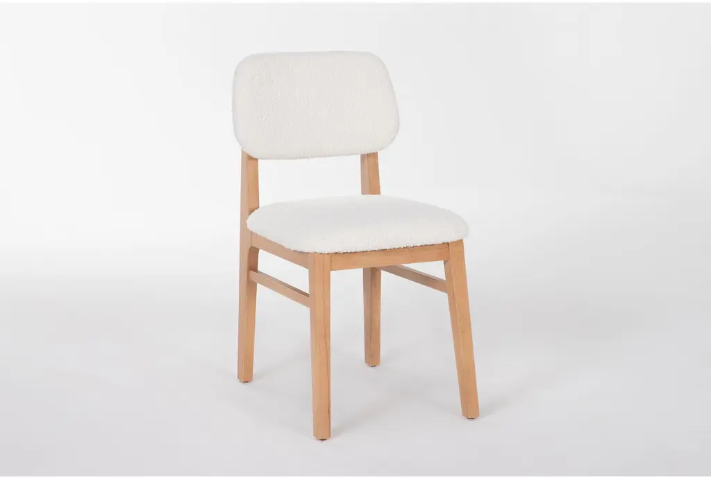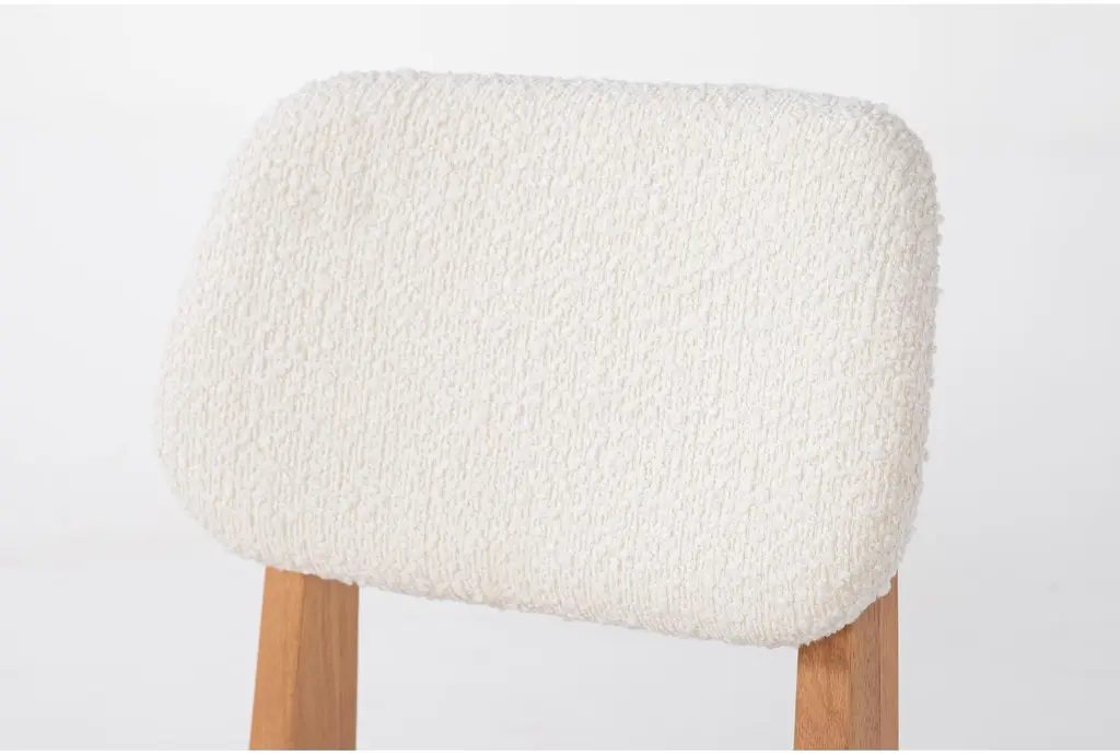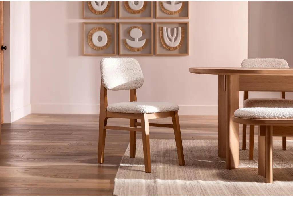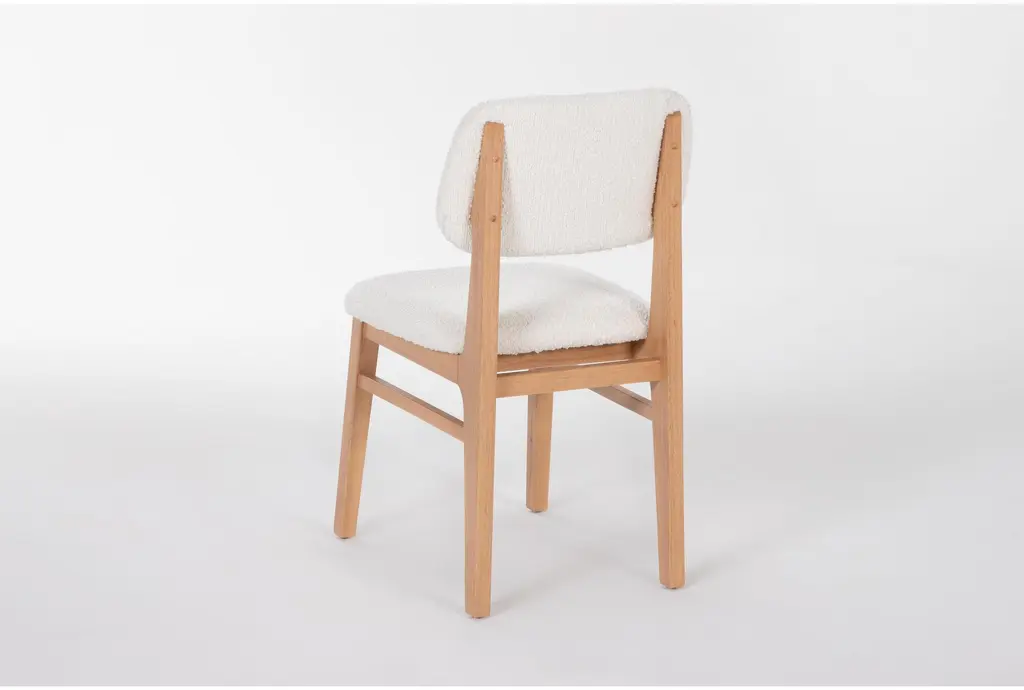 Catania Natural Modern Oak Wood + White Boucle Performance Fabric Dining Chair With Back | Armless