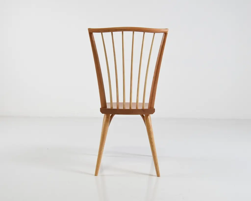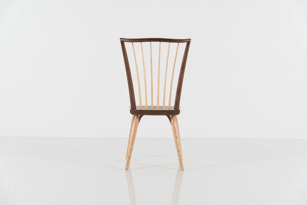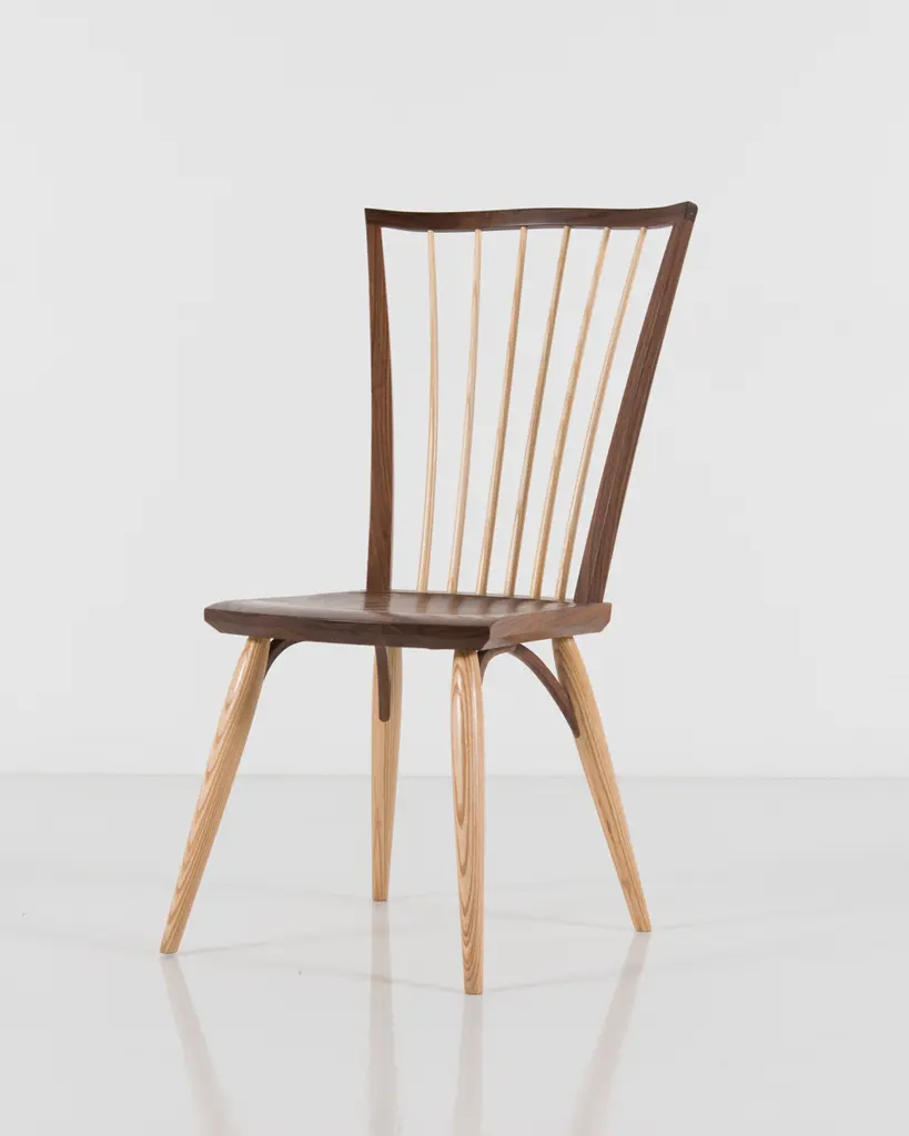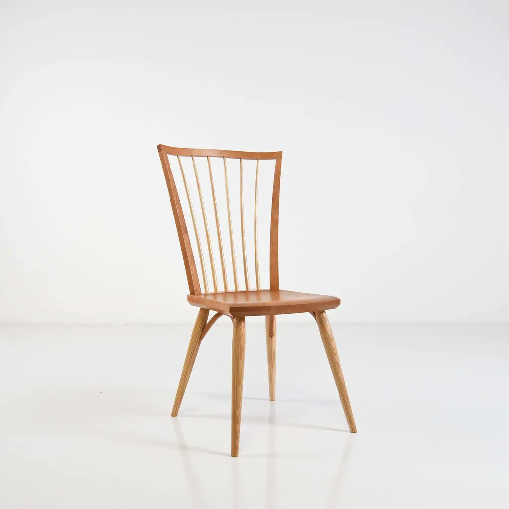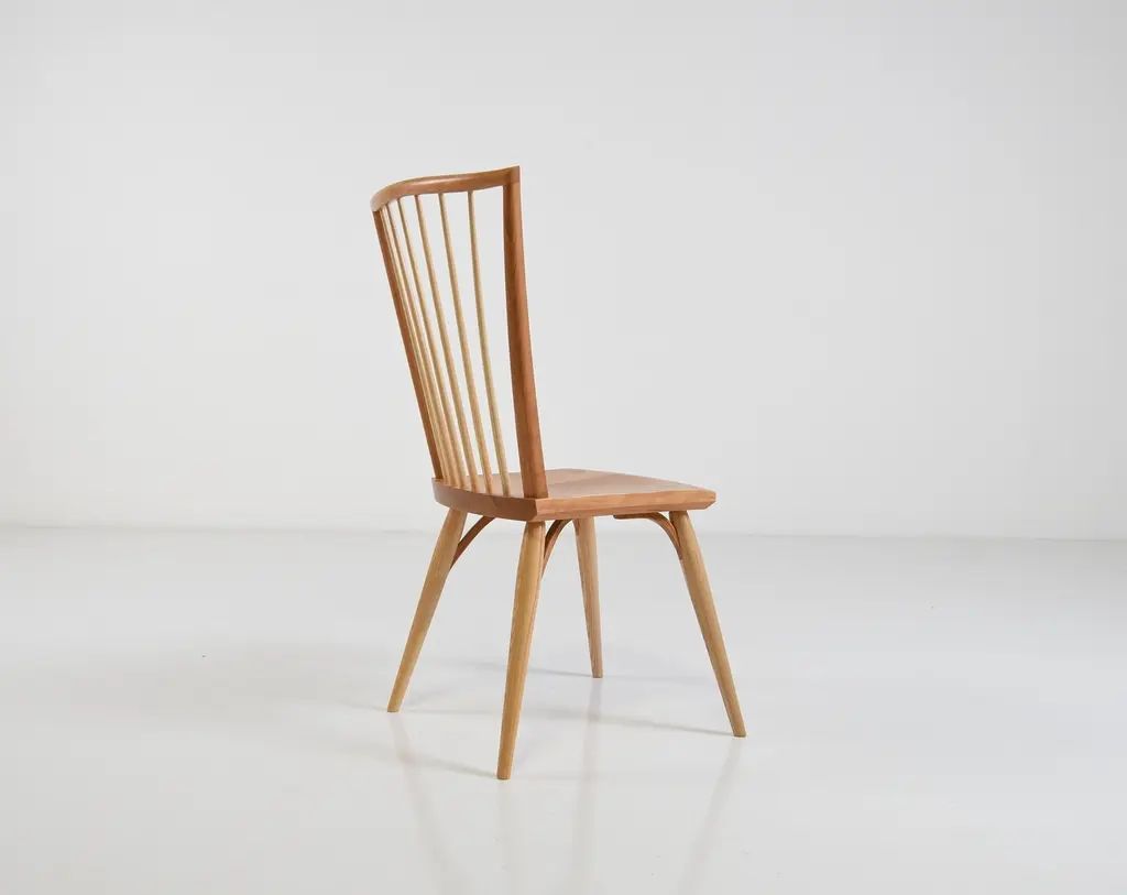 A fresh derivation of the seminal English Windsor Chair, our Catena Side Chair finds the perfect balance between light and substance. This chair relies on hardwood knees, not spreaders, freeing plenty of space for resting feet and legs, and vertical components crafted from ash- a resilient, durable wood that provides stability in the legs, and a hint of flexibility in its slender back spindles.