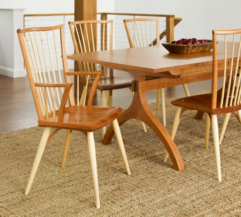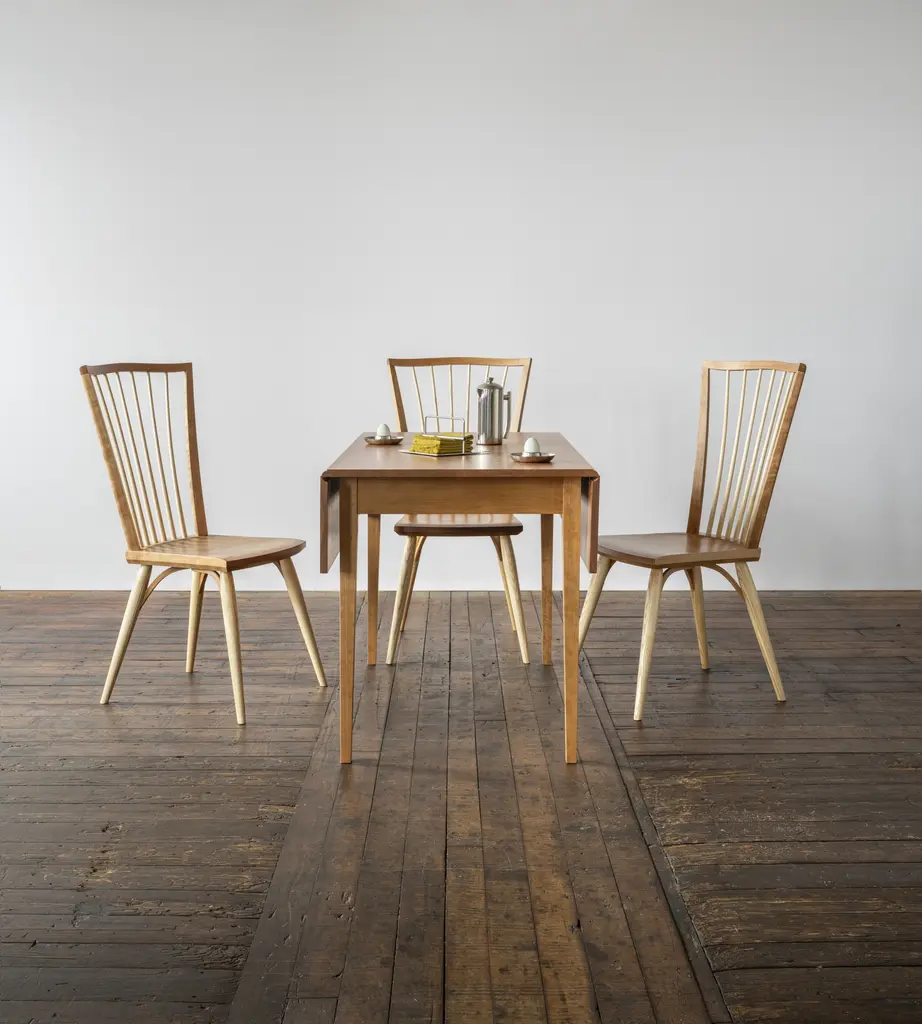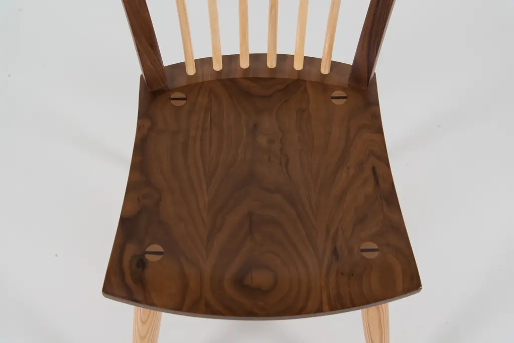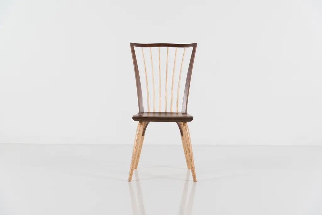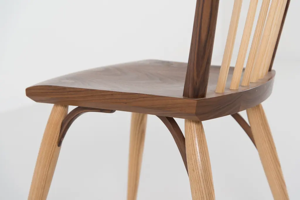 A fresh derivation of the seminal English Windsor Chair, our Catena Side Chair finds the perfect balance between light and substance. This chair relies on hardwood knees, not spreaders, freeing plenty of space for resting feet and legs, and vertical components crafted from ash- a resilient, durable wood that provides stability in the legs, and a hint of flexibility in its slender back spindles.