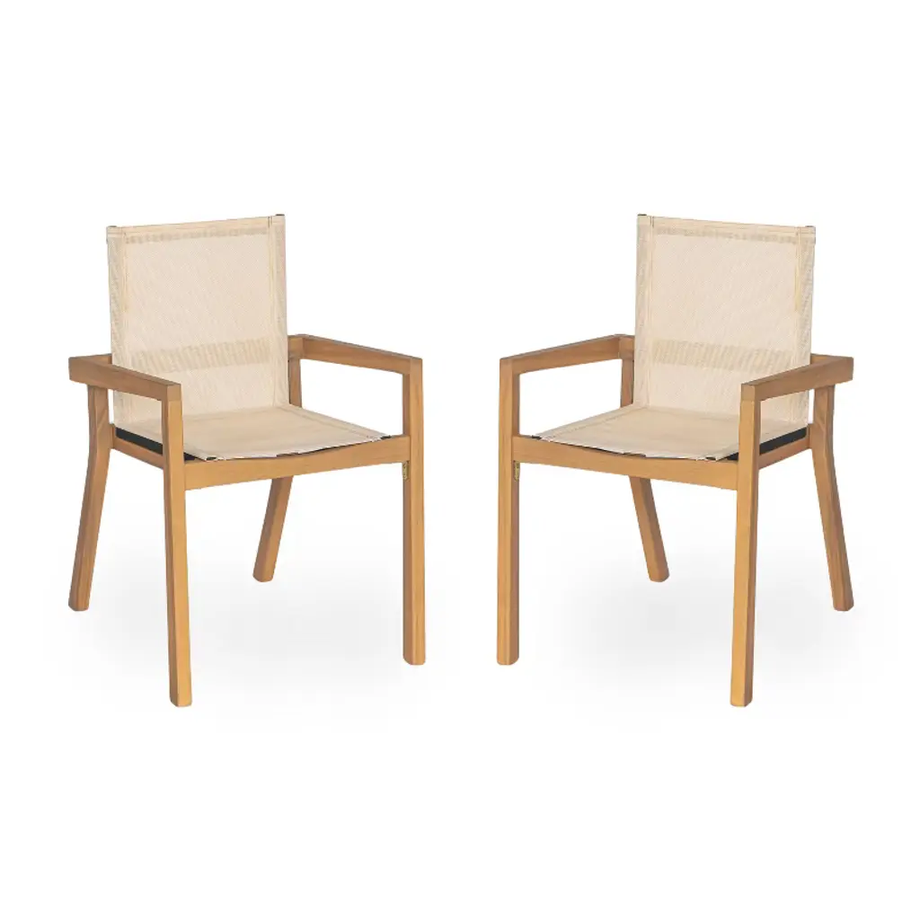Cavinas Outdoor Dining Chairs Set Of 2, Patio Dining Chairs With Teak-finish Acacia Wood Frame,all-weather Armchairs For Patio,teak+beige