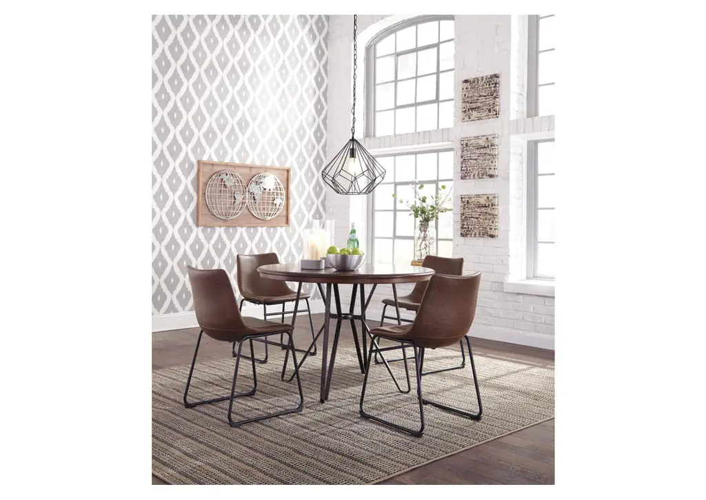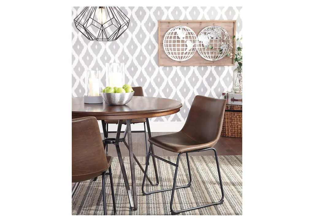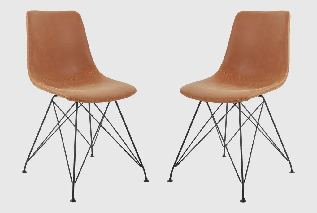 With its distinctive contoured bucket seat and tubular metal base, the Centiar dining chair serves up a fresh twist on mid-century inspired style. Faux leather upholstery has a charmingly vintage tone. What a timeless look for eat-in kitchens and casually cool dining rooms. Weight 16.000 lbs. (7.2kgs.)