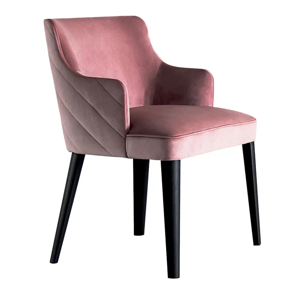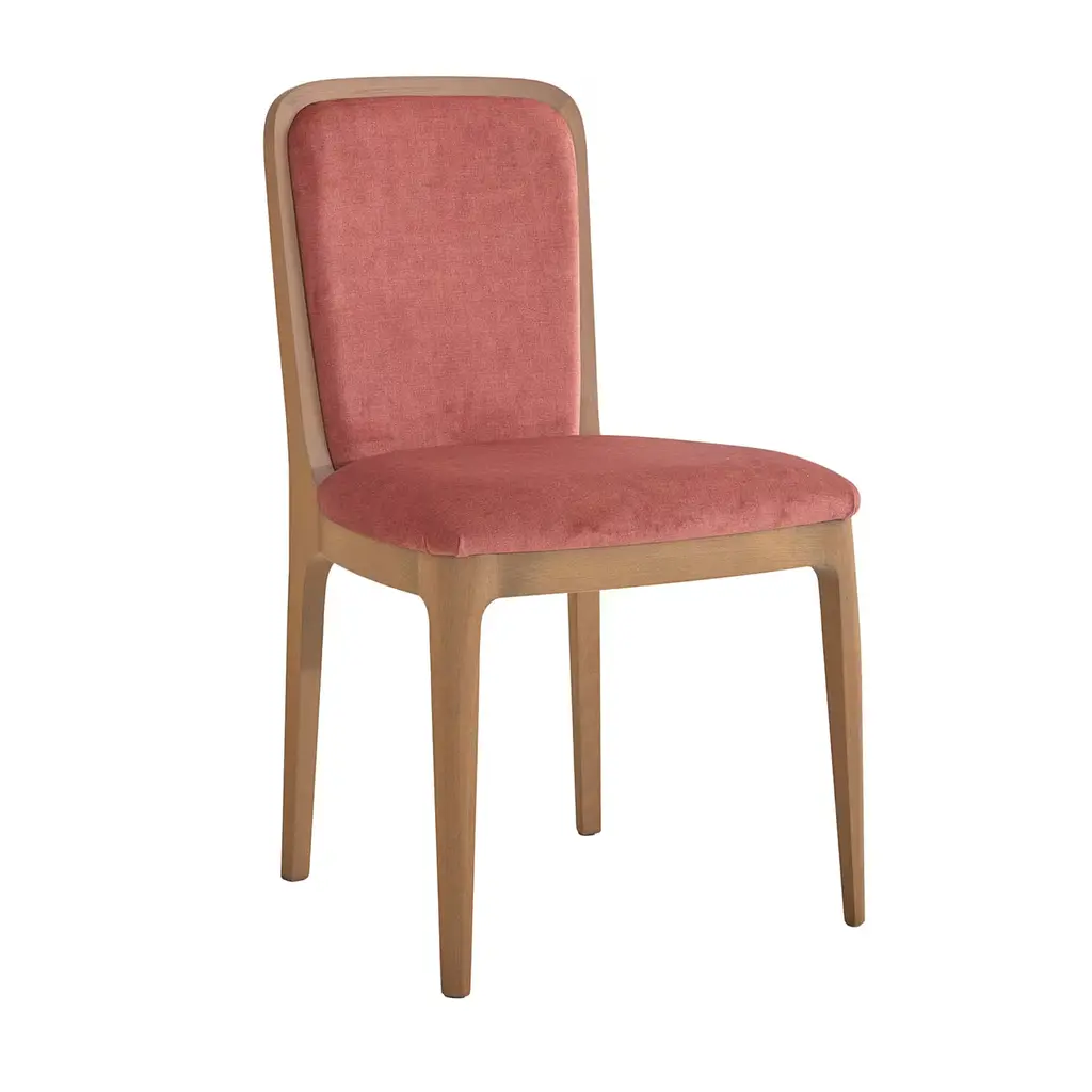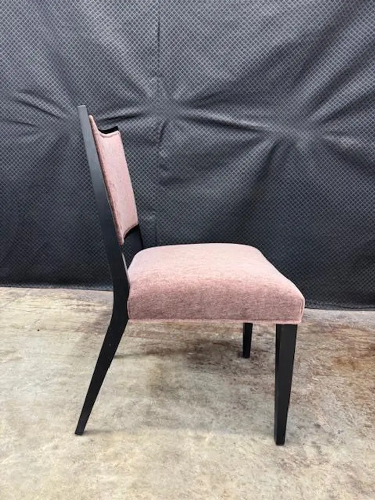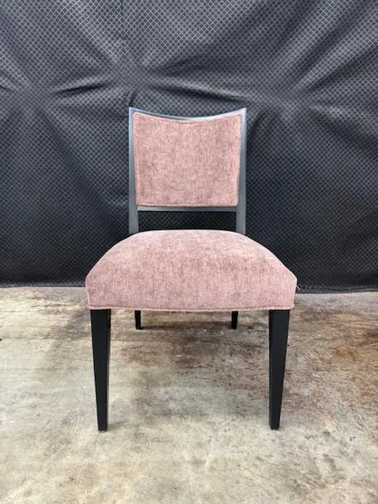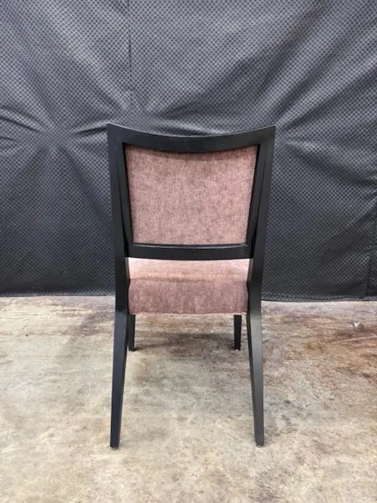 The Corso Side Chair pairs rich aubergine fabric with a Night finish, softly distressed for a lived-in charm.