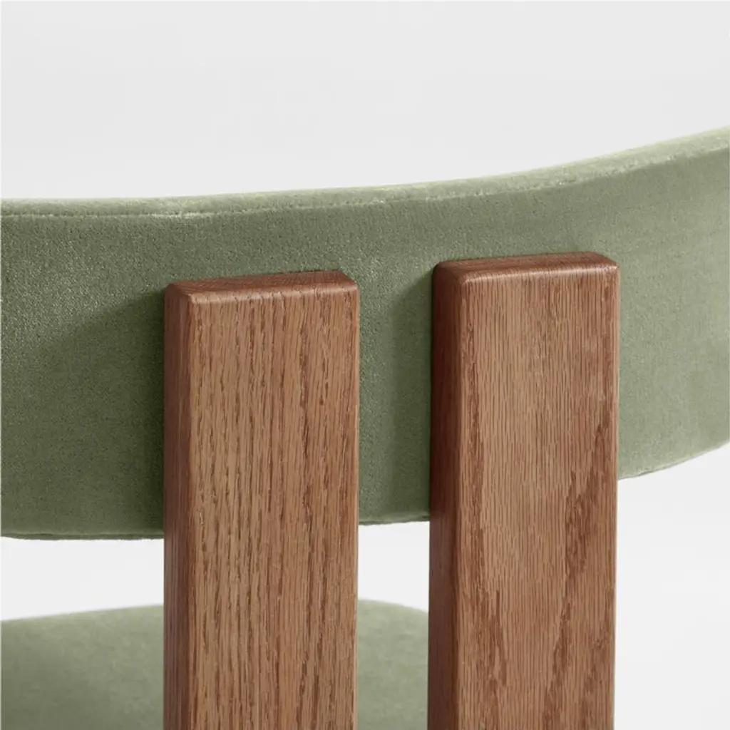 Named for the important ritual of sharing meals together, our Ceremonie chair invites lingering around the dinner table with comfort and casual good looks. The chair reimagines the classic modern wishbone chair with an armless profile, vertical lines and an eye-catching double-beamed back structure. The oak frame is wire brushed with a hazelnut brown finish to bring out the wood's beautiful grain. The upholstered seat and U-shaped back comfort with foam padding and a basil green faux mohair velvet.We've partnered with bestselling author, interior designer and EyeSwoon founder Athena Calderone to bring you a collection of designs for meaningful, beautiful modern living. Inspired by ancient forms and European finds, Crate x Athena fine-tunes scale, materials and comfort to fit seamlessly into your home.By choosing FSC ®-certified furniture, you are supporting responsible management of the world's forests.