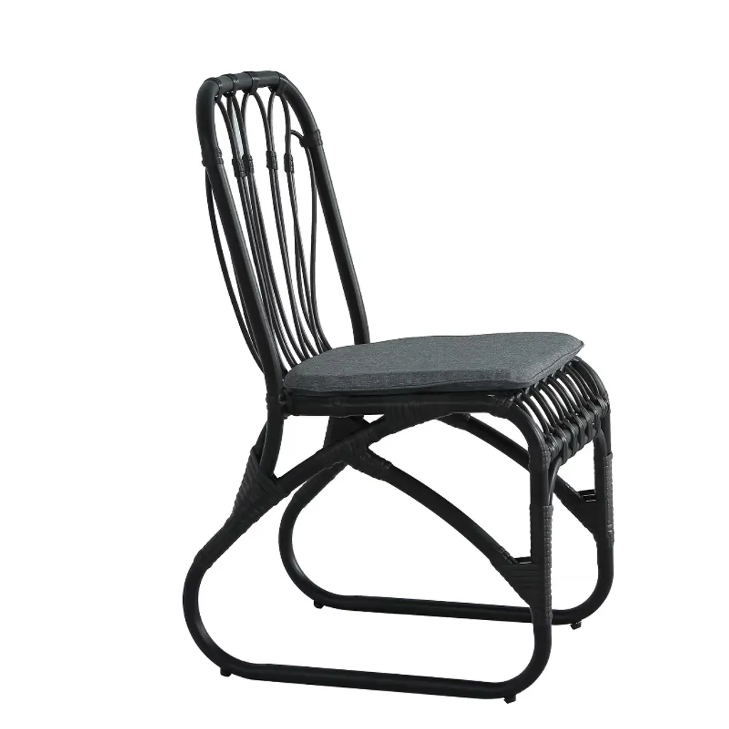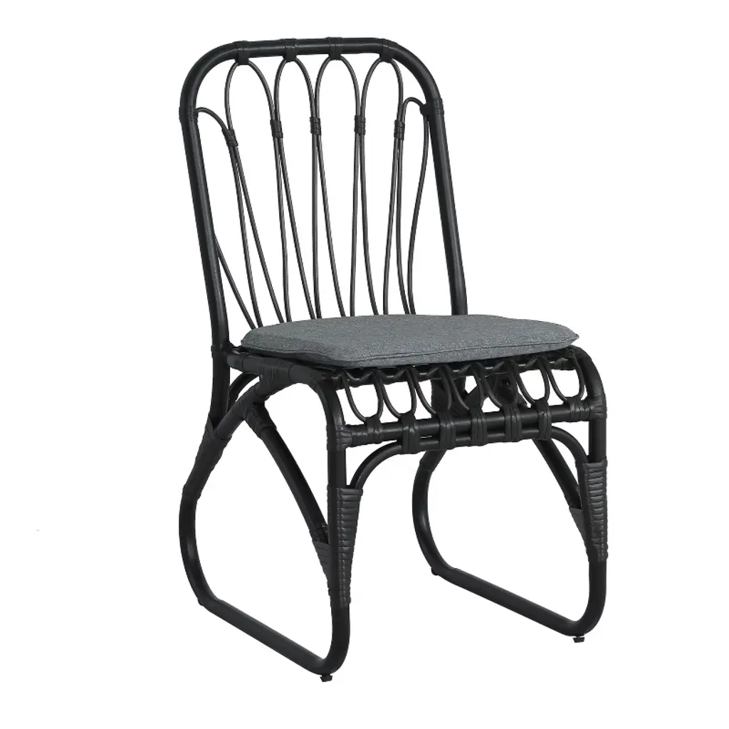This outdoor chair features a durable iron frame and elegant hand-woven rattan, designed to withstand the elements. With a weight capacity of 400lbs, it provides sturdy, comfortable seating for all. The unique petal-shaped backrest adds a stylish touch, while adjustable foot pads allow for height customization on uneven surfaces. The 1.2-inch thick cushions offer extra comfort and are covered in washable polyester fabric with a zipper for easy cleaning. Available in two colors, this chair comes fully assembled and requires minimal maintenance. Simply wipe with a cloth to keep it looking fresh, making it perfect for any outdoor space.
