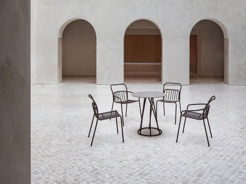 Cestat is a garden stackable chair made of galvanized steel, polyester powder coated.Suitable for outdoor, indoor, and contract use.We present CESTAT, a multifaceted collection made in aluminum. Its versatile silhouette stands out for its sophistication and freshness, which make it ideal for different areas. Manufactured with precision, each piece represents durability and contemporary elegance. CESTAT perfectly combines functionality with style, elevating any space with its light, elegant design and attention to detail. Collection made of aluminum, polyester powder coated. The materials we use are durable, suitable for intensive use and weather-resistant. Therefore, they are perfect for indoor, outdoor and contract use. Likewise, our materials are noble, 100% recycled and recyclable, and environmentally responsible.
