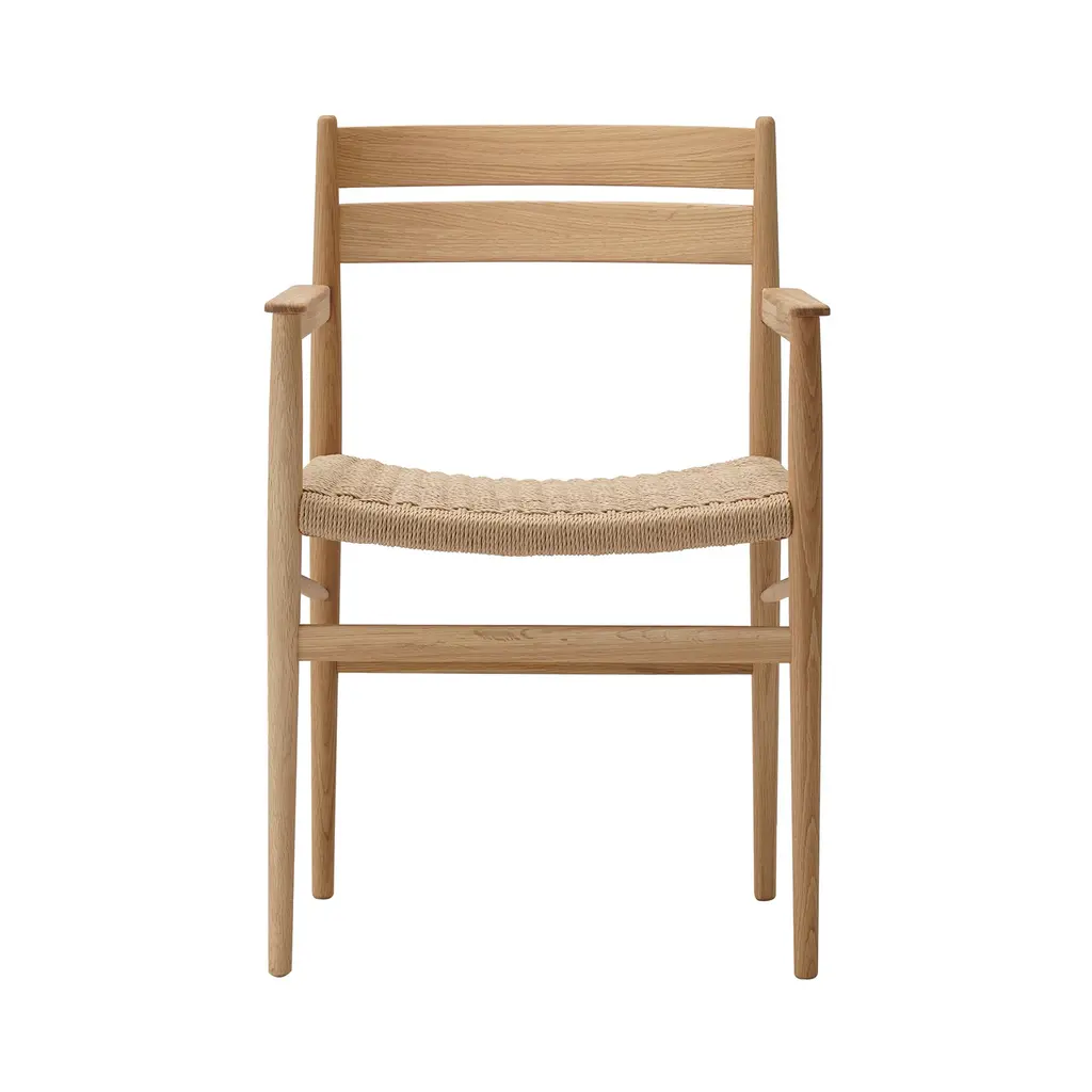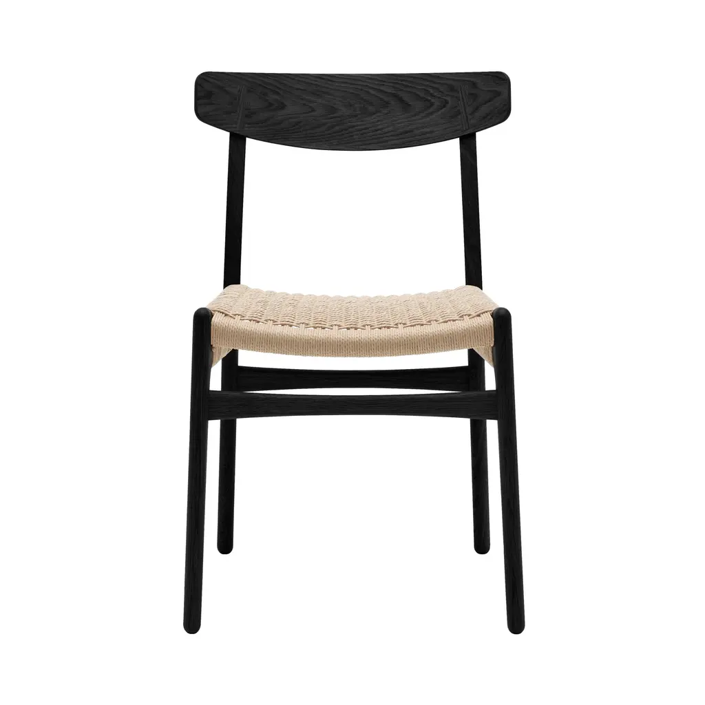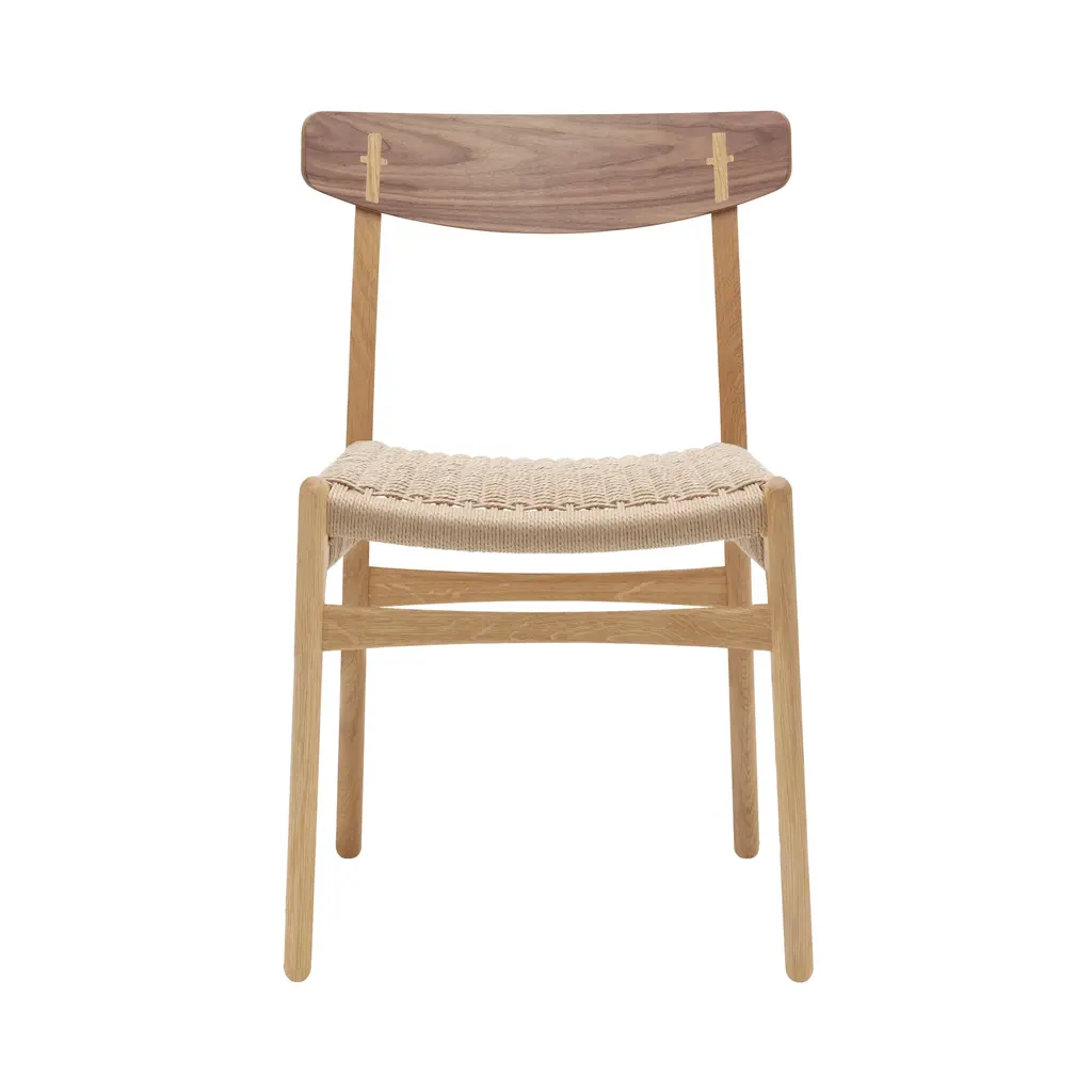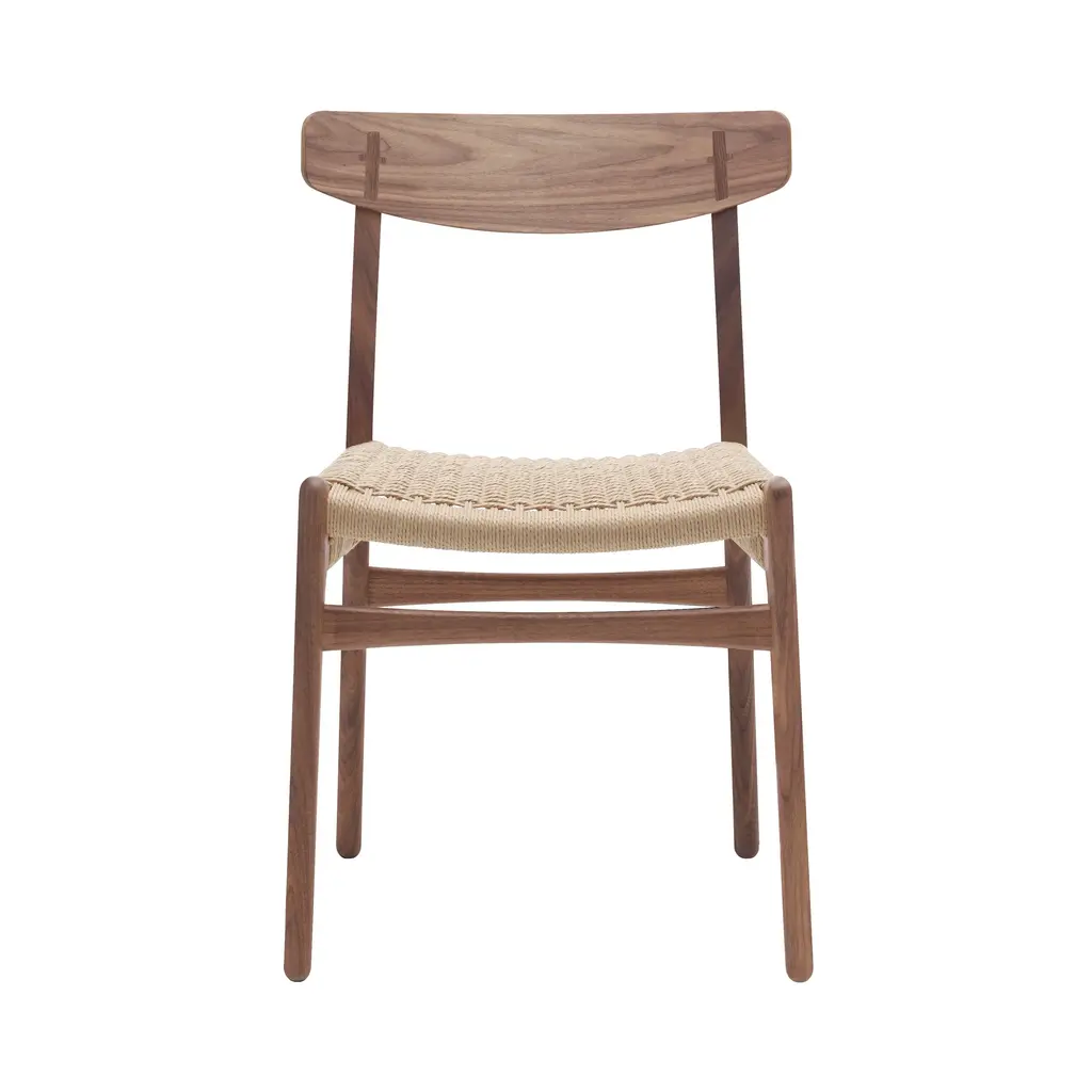 An early example of Hans J. Wegner's timeless style and sense of craftsmanship, this dining chair was one of his initial pieces debuting in 1950 for Carl Hansen & Søn. Sans armrests, CH23 is practical for fitting around the table, even in smaller confines. Made of solid oak or walnut, or a combination of these, it has a form-pressed veneer backrest and comes in a variety of finishes. Along with the characteristic double-woven paper cord seat in natural or black, an optional leather cushion is also offered.