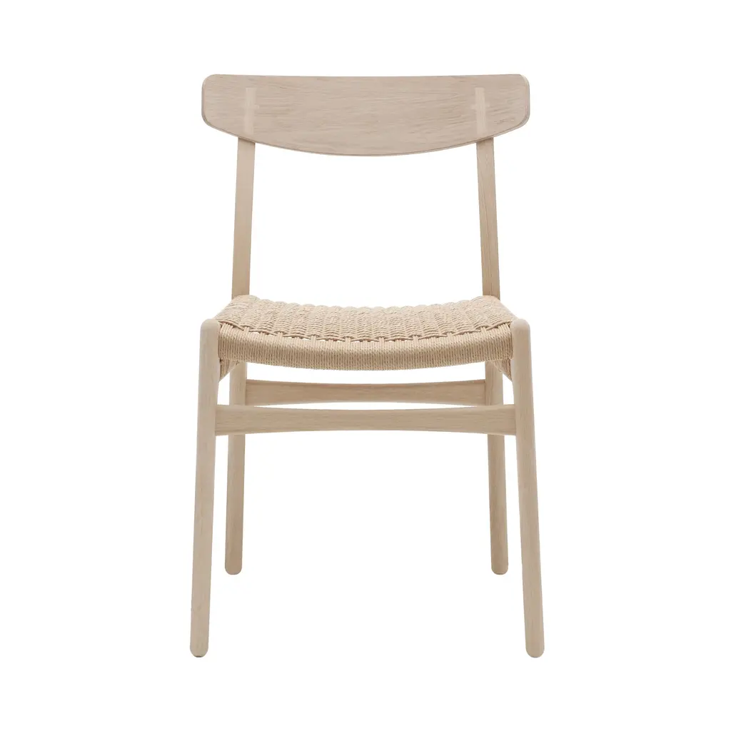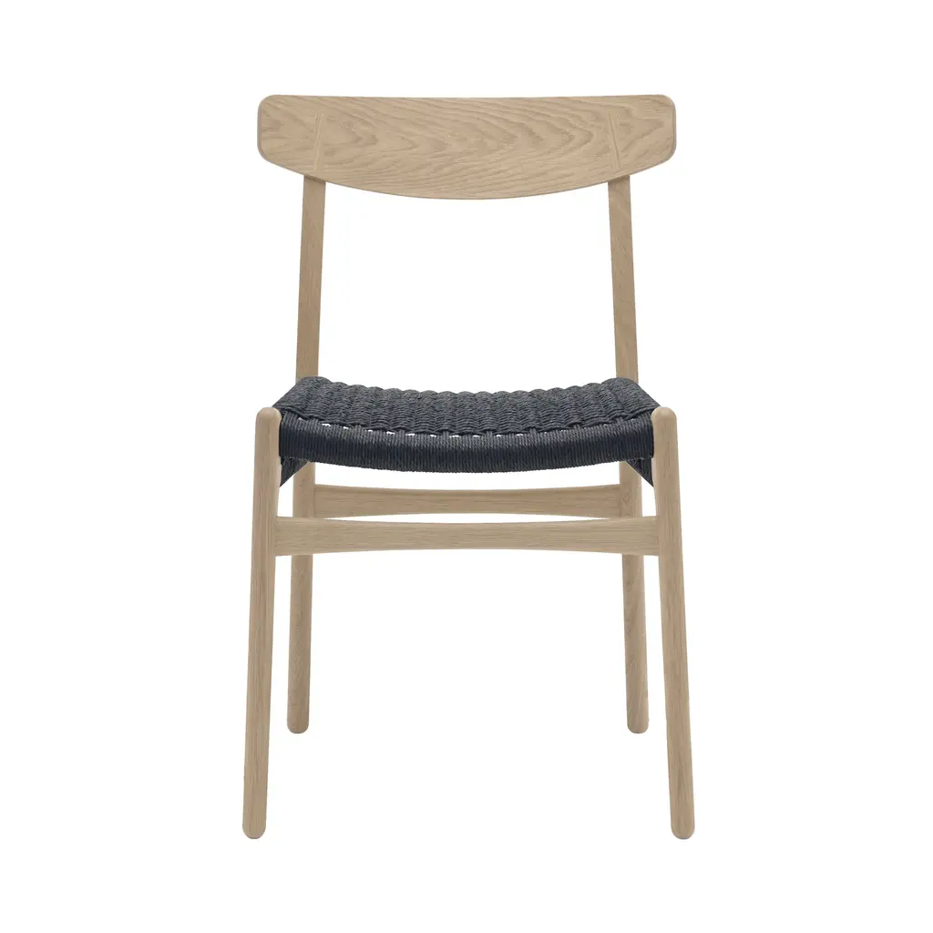 An early example of Hans J. Wegner's timeless style and sense of craftsmanship, this dining chair was one of his initial pieces debuting in 1950 for Carl Hansen & Søn. Sans armrests, CH23 is practical for fitting around the table, even in smaller confines. Made of solid oak or walnut, or a combination of these, it has a form-pressed veneer backrest and comes in a variety of finishes. Along with the characteristic double-woven paper cord seat in natural or black, an optional leather cushion is also offered.