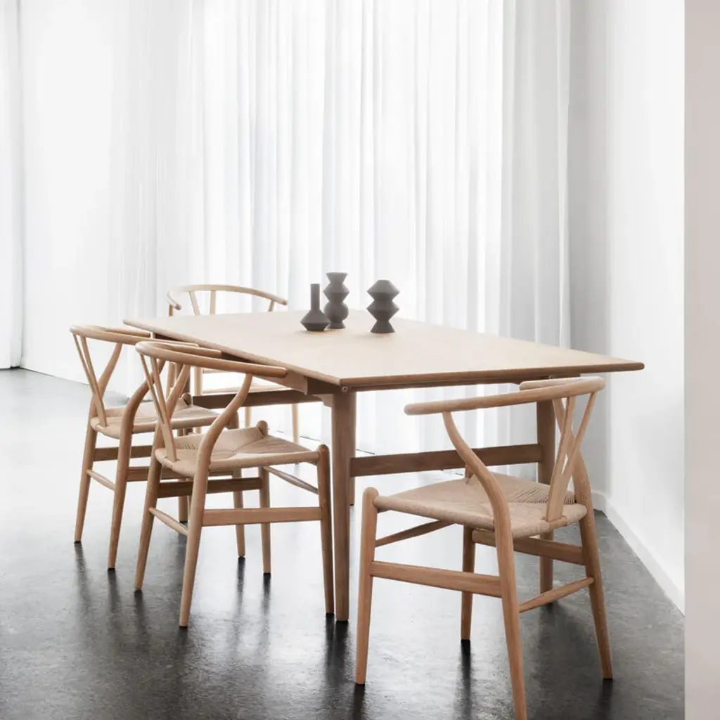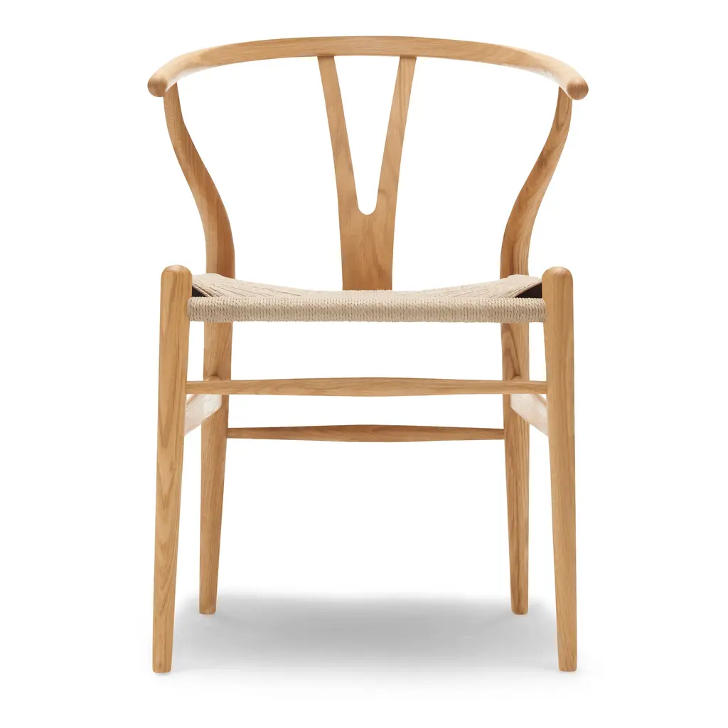 A Danish design classic, the CH24 Wishbone Chair from Carl Hansen is an iconic seat originally introduced in 1950 by designer Hans J. Wegner. Requiring over 100 steps to manufacture, each piece is crafted by hand from solid wood with a handwoven paper cord seat. Suitable for dining, or as part of an entryway vignette, this chair combines high-quality craftsmanship and timeless style.Highlights