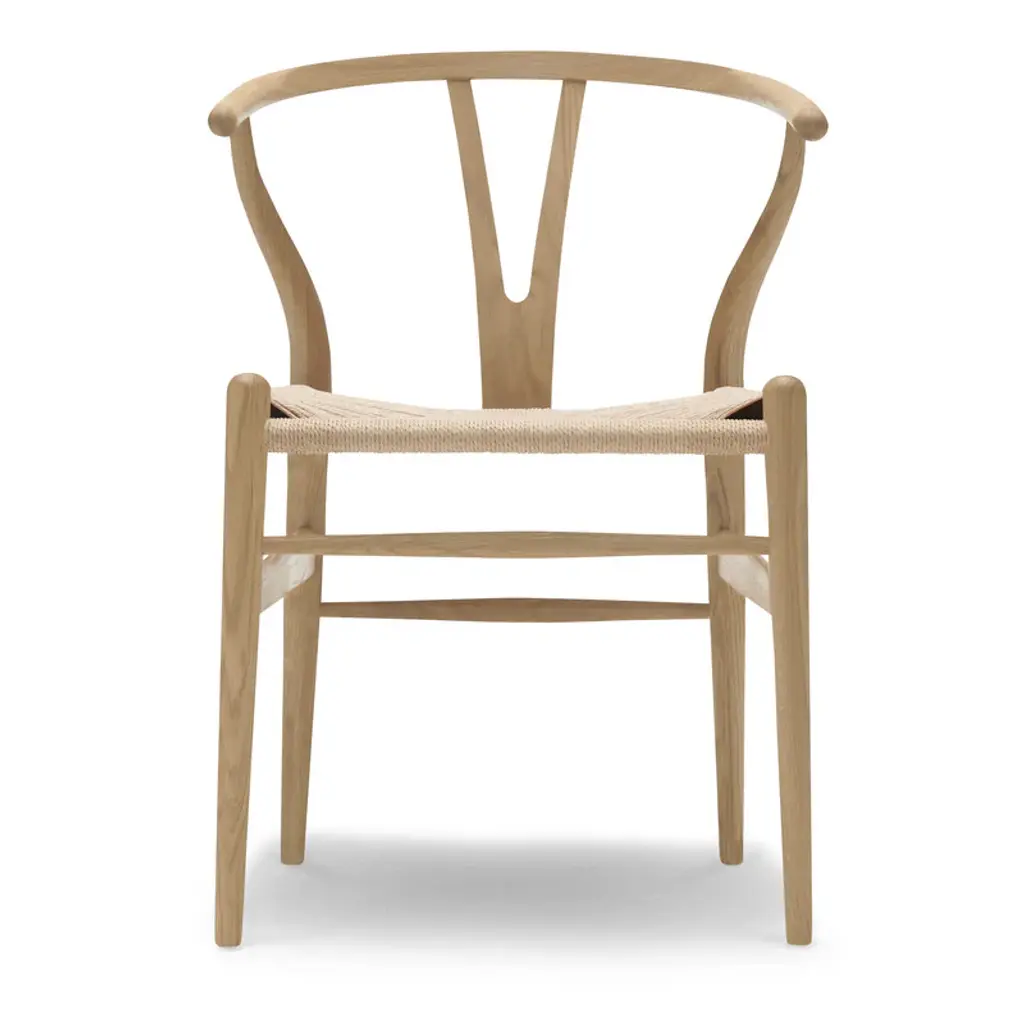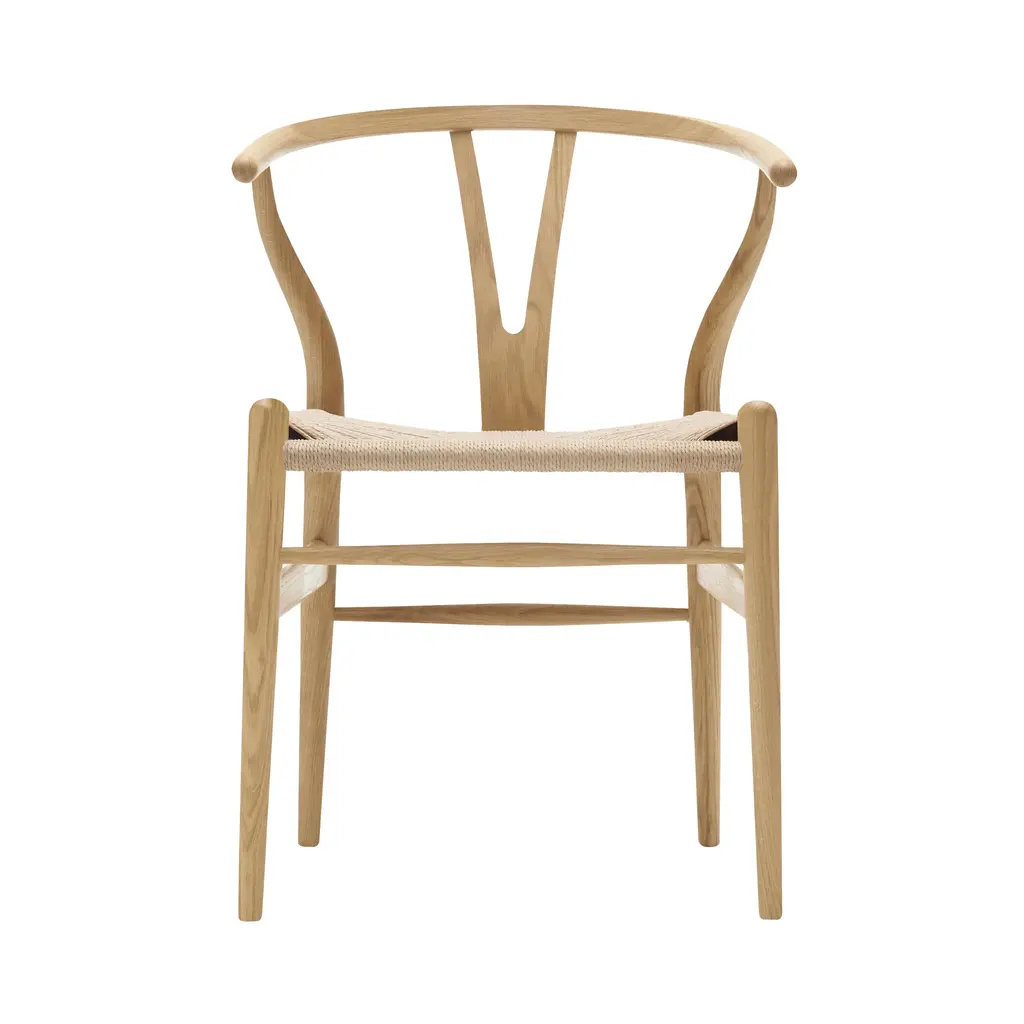 A Danish design classic, the CH24 Wishbone Chair from Carl Hansen is an iconic seat originally introduced in 1950 by designer Hans J. Wegner. Requiring over 100 steps to manufacture, each piece is crafted by hand from solid wood with a handwoven paper cord seat. Suitable for dining, or as part of an entryway vignette, this chair combines high-quality craftsmanship and timeless style.Highlights