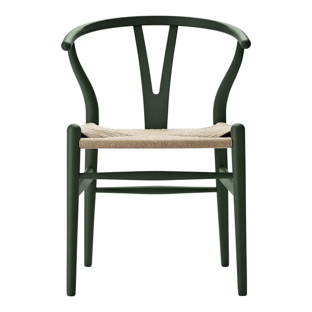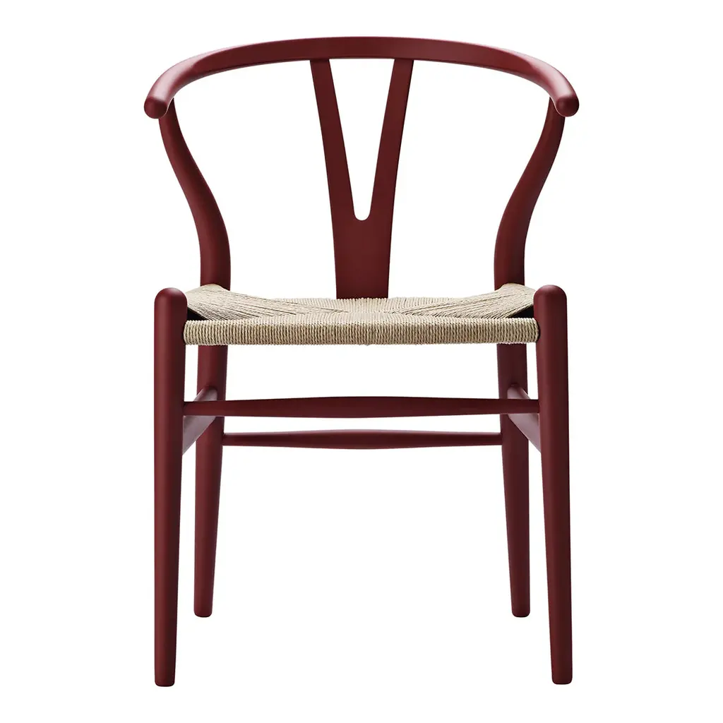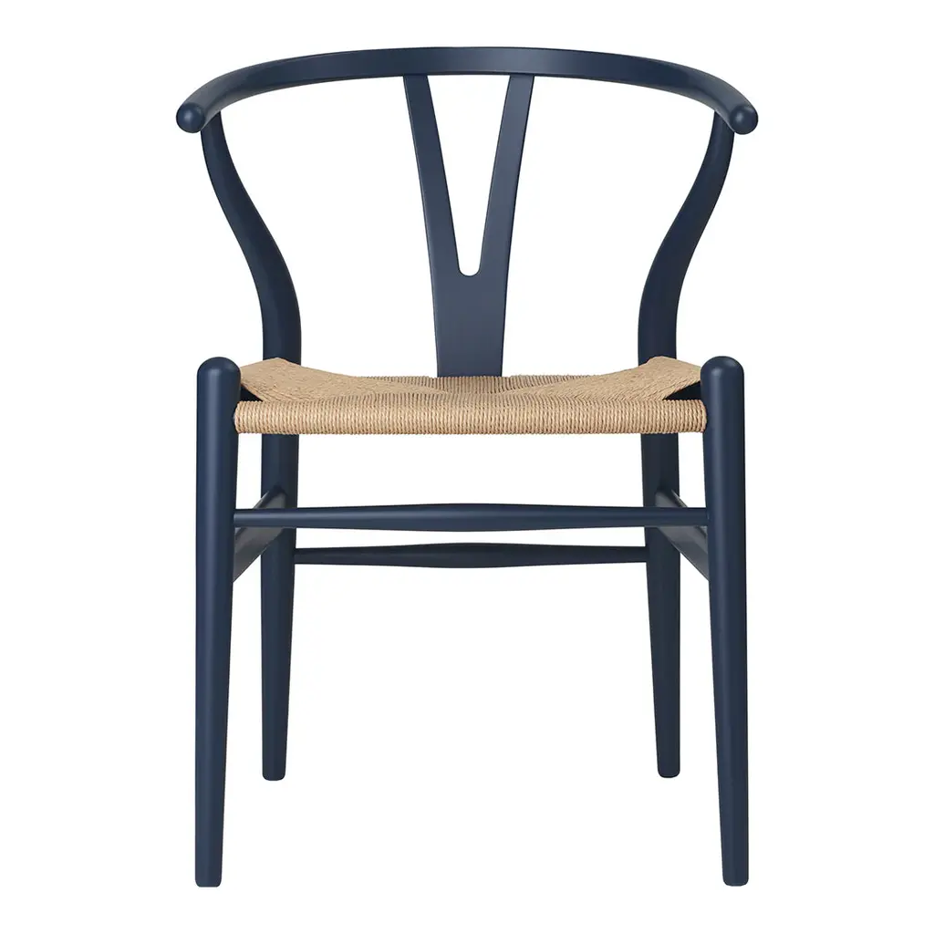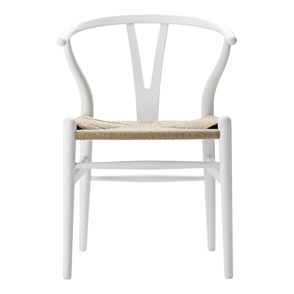 The Carl Hansen & Søn Wishbone Chair (CH24), first introduced in 1949, stands as Hans J. Wegner's most celebrated contribution to Danish design heritage. This masterwork, which has been in continuous production for over 70 years, exemplifies the perfect synthesis of form, function, and masterful craftsmanship that defines Scandinavian modernism. Drawing inspiration from Ming Dynasty Chinese chairs, Wegner ingeniously reimagined traditional seating through a modernist lens. The chair's distinctive Y-shaped back support, which earned it the 'Wishbone' moniker, is more than a striking design element – it provides essential structural support to the steam-bent top rail while ensuring exceptional comfort. This innovative solution enables the chair's graceful silhouette while maintaining its remarkable durability. Each Wishbone Chair represents a testament to Danish craftsmanship, requiring over 100 precise steps to complete, most executed entirely by hand. The seat alone showcases extraordinary artisanship, with skilled craftspeople spending approximately one hour weaving 120 meters of paper cord into a comfortable, durable surface that only becomes more beautiful with age. Perfect for both residential and commercial settings, the Wishbone Chair's modest proportions and lightweight design make it particularly well-suited for dining and conversation areas. Whether arranged around a table or standing alone, each chair serves as a sculptural reminder of why Danish modern furniture continues to captivate design enthusiasts worldwide. Available in various premium solid wood options, this investment piece adapts gracefully to any thoughtfully curated interior while maintaining its distinctive character.