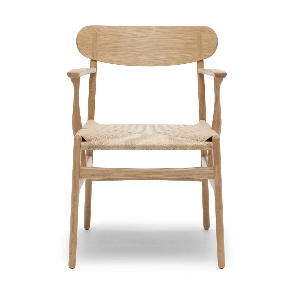 Indulge in timeless luxury with the CH26 Dining Chair by Hans J. Wegner. Crafted by Carl Hansen & Søn, this iconic chair features organic shapes, a refined back, and a hand-woven seat for ultimate comfort. With its proportions ideal for extended periods of sitting, elevate your dining or workspace with the CH26. Highlights