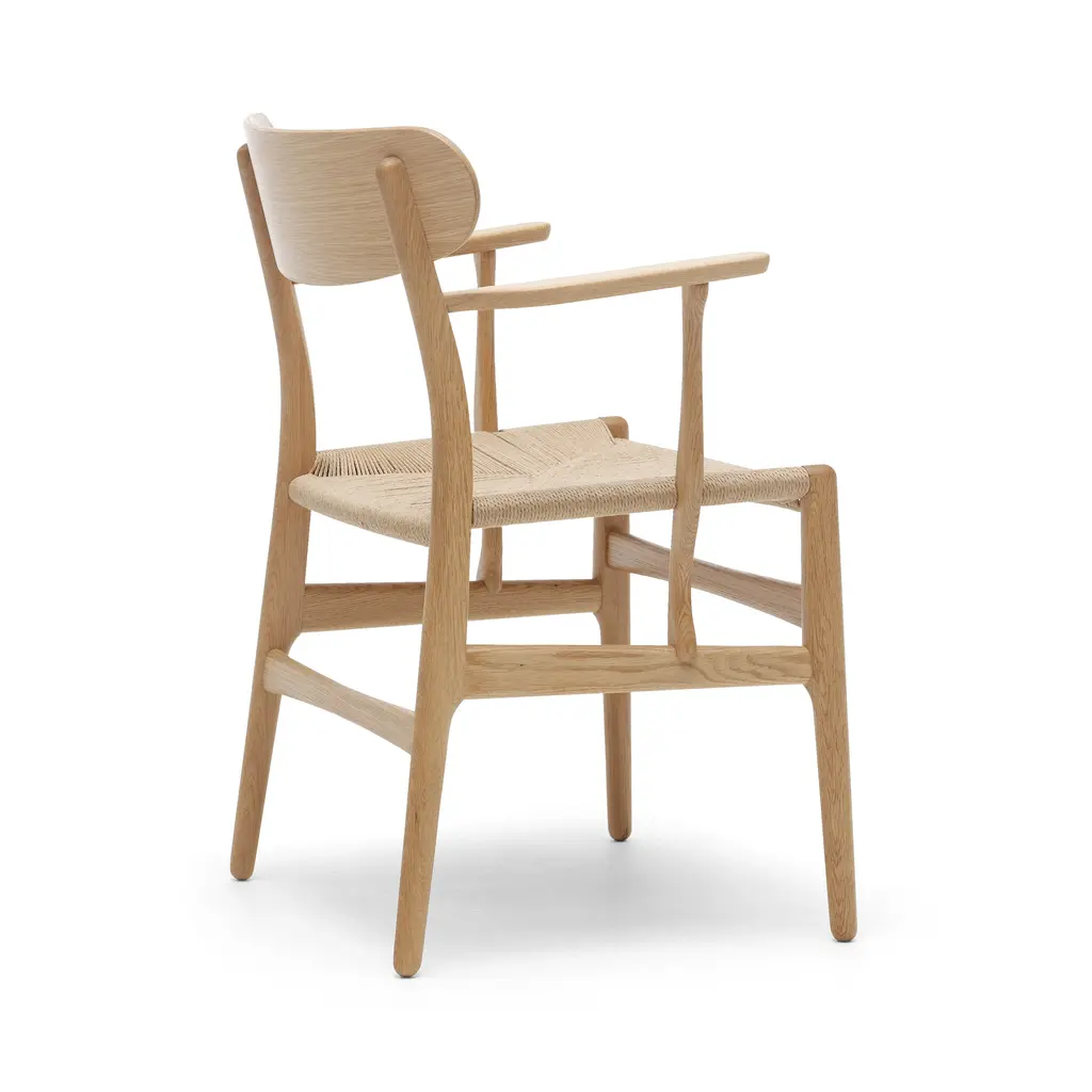 Indulge in timeless luxury with the CH26 Dining Chair by Hans J. Wegner. Crafted by Carl Hansen & Søn, this iconic chair features organic shapes, a refined back, and a hand-woven seat for ultimate comfort. With its proportions ideal for extended periods of sitting, elevate your dining or workspace with the CH26. Highlights