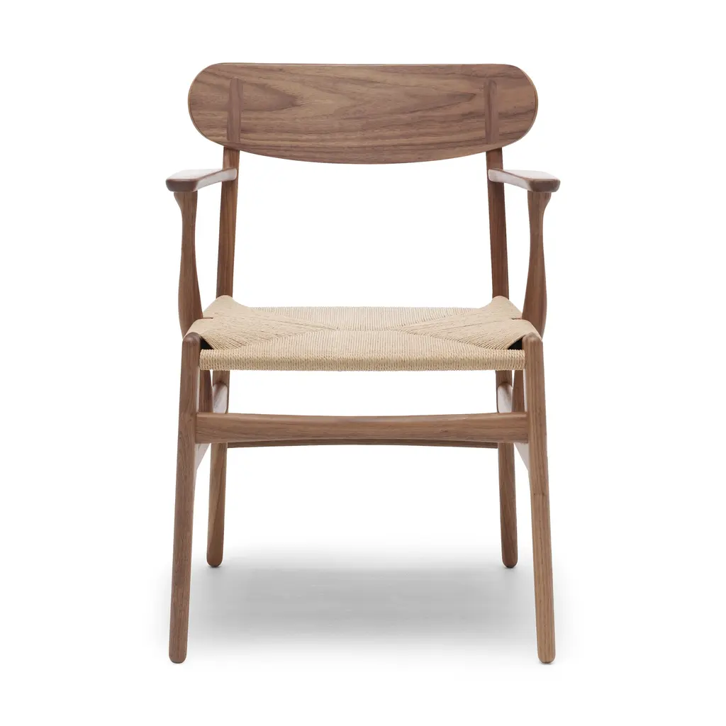 Indulge in timeless luxury with the CH26 Dining Chair by Hans J. Wegner. Crafted by Carl Hansen & Søn, this iconic chair features organic shapes, a refined back, and a hand-woven seat for ultimate comfort. With its proportions ideal for extended periods of sitting, elevate your dining or workspace with the CH26. Highlights