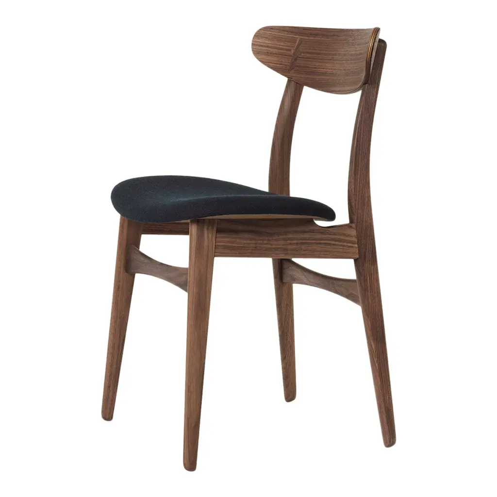 Hans J. Wegner presented the CH30 chair in 1954 and the harmonious design embodies his ongoing journey to design the perfect chair. The CH30 dining chair showcases Wegner's signature style: His organic design and exceptional craftsmanship can be seen in sophisticated details such as the cruciform cover caps on the curved, oval backrest that pitches back in line with the rear legs to achieve ultimate comfort. Combined with the wide, form-pressed padded seat it makes for a chair with a high level of comfort and functionality. As the highly comfortable chair can be tucked under a table, it only takes up limited space which makes it ideal for any modern context. Having been out of production for a number of years, the chair is recreated in close collaboration with Hans J. Wegner's Design Studio. The elegant CH30 chair is produced according to his original working drawing, an extra two centimeters have been added in height to accommodate modern standards.