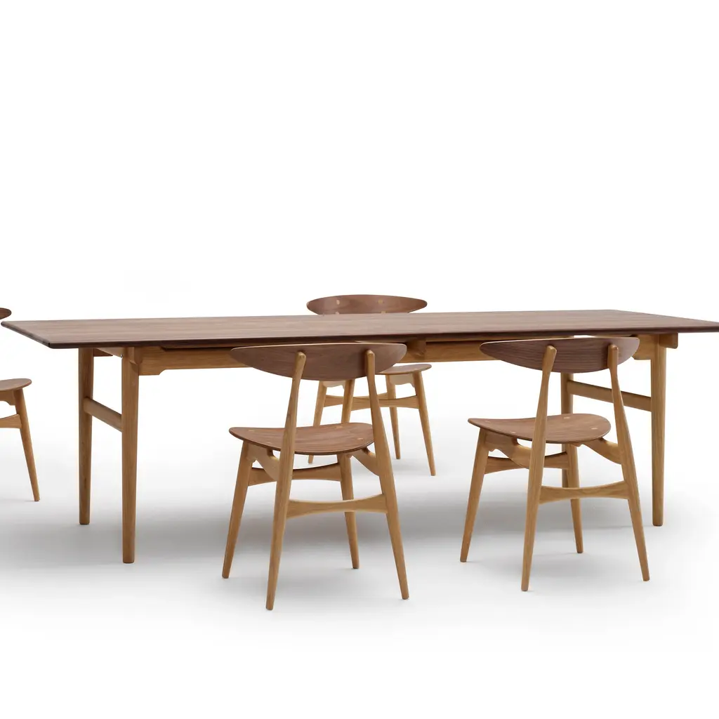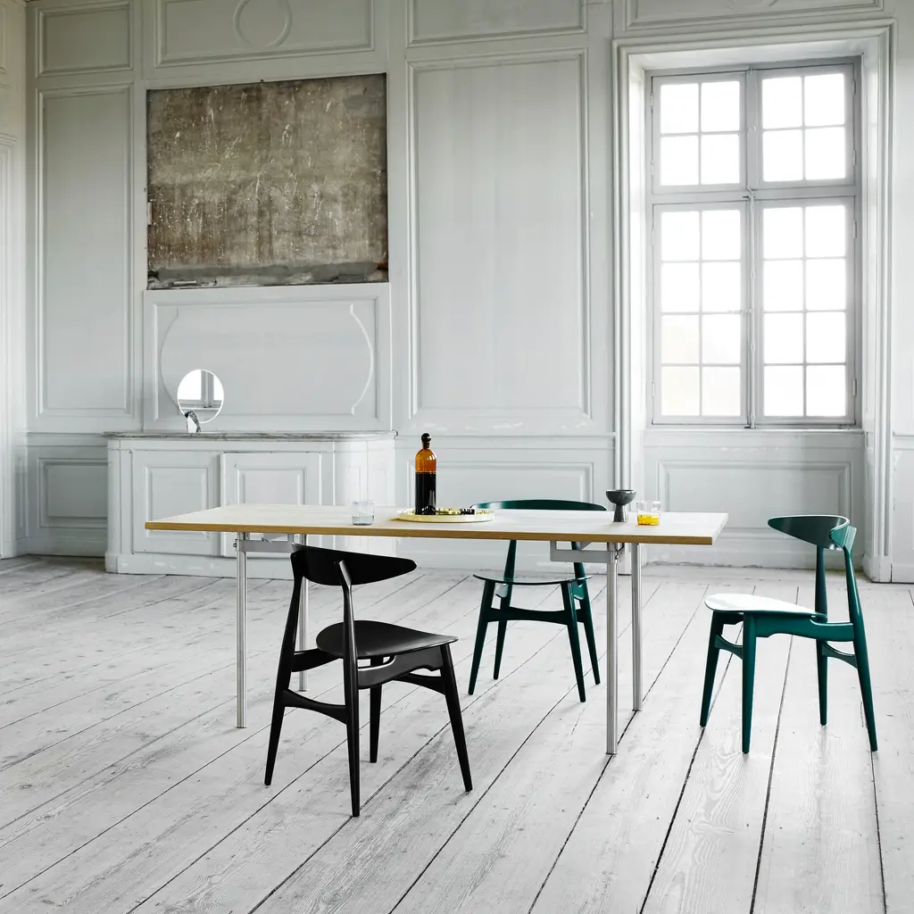 First appearing in 1957, Hans J. Wagner's iconic dining chair endures with its combination of great comfort and everyday stability. CH33T is a classic design that remains fresh despite its familiar Midcentury references. Carl Hansen & Søn applies its superb craftsmanship to versions of the seating in oak, walnut or beech as well as mixed oak and walnut styles. Numerous finish options are on offer as well, with natural, soaped, oiled and lacquered treatments available.