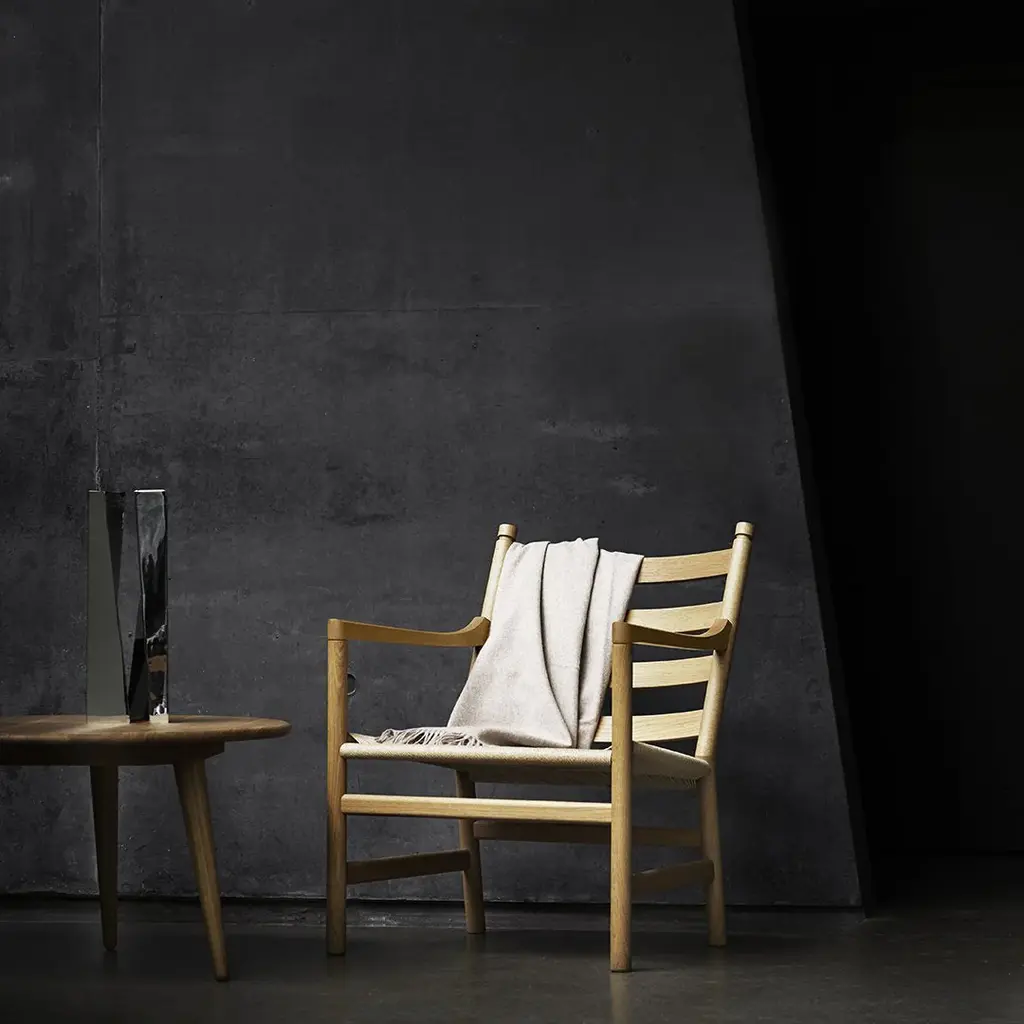 The CH 44 was designed by Hans J. Wegner in 1965. The sitting comfort of the CH 44 is optimal for such a small easy chair with wooden back, woven seat and slim armrests. One of the advantages of the CH44 easy chair, is its modest Dimensions (in):and its low weight, which makes it almost as easy to move around as a dining chair.