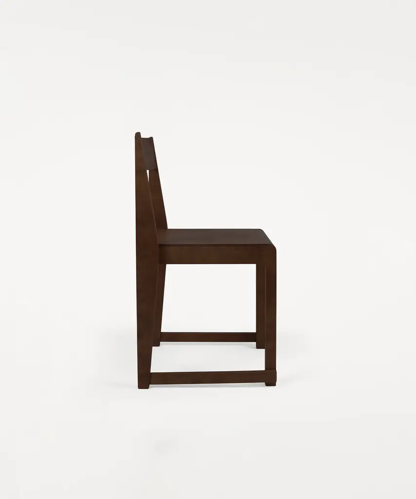 Chair 01 is defined by a geometric silhouette and a series of stark linear planes inspired by seating commonly found in Nordic churches since the early 20th century. Stackable and easy to store, the dining chair's archetypical sled construction leads to reliable sturdiness. Made in Baltic oiled birch, it comes in various finishes suiting a wide range of environments. Produced by Frama - an interior and product design studio based in Copenhagen. The studio is a dynamic testing ground for new designs and projects, embodying their classical, yet boundary-pushing approach.