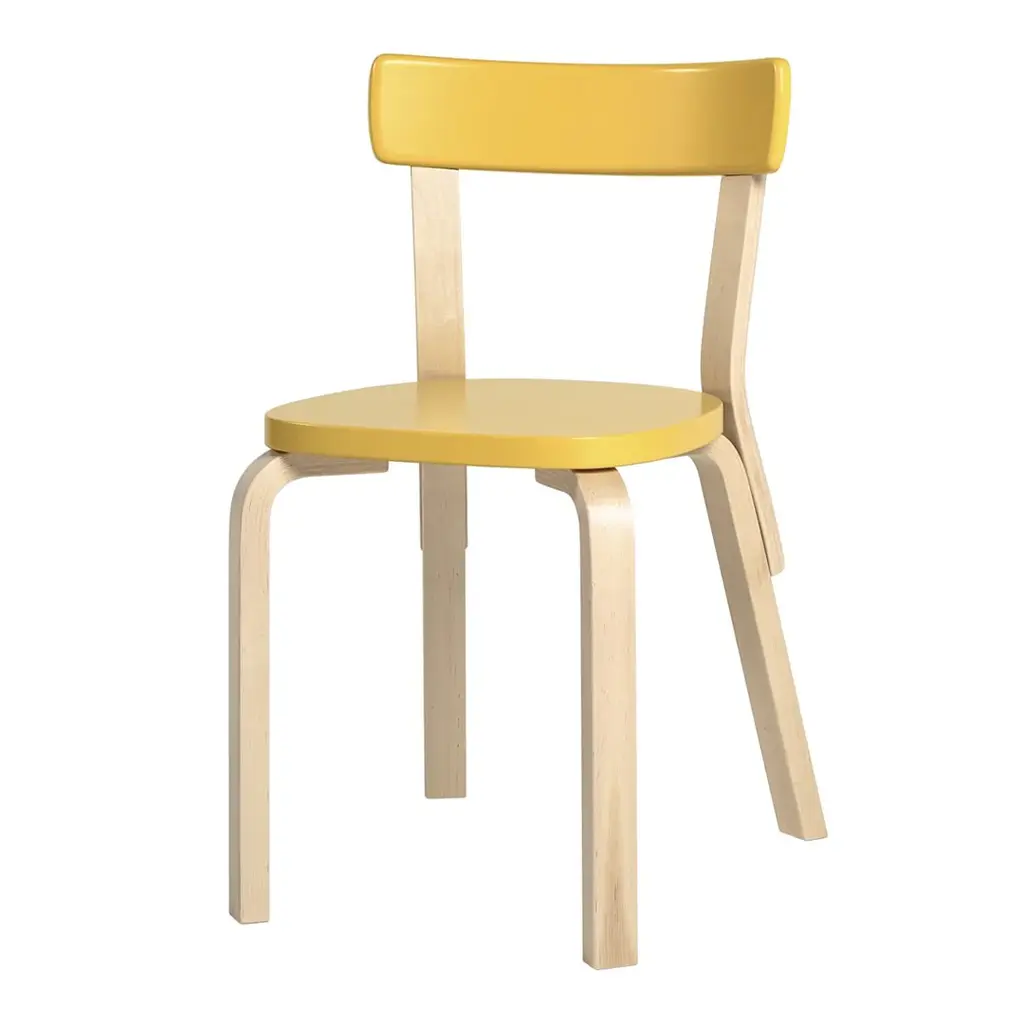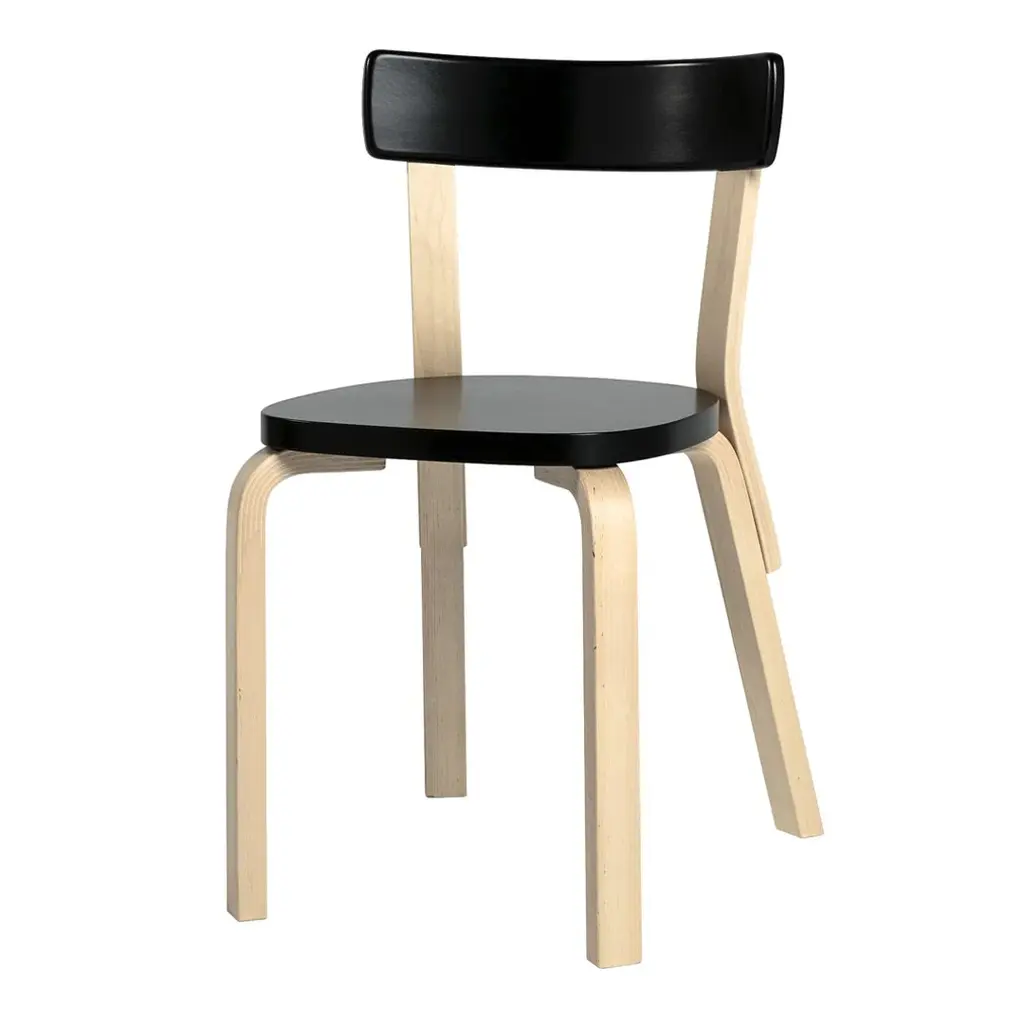 Chair 69 is one of Artek's most popular chairs, a universal wooden chair in the tradition of classic kitchen and cafe chairs With a broad seat and supportive backrest, Chair 69 exudes durability and stability while retaining an elegance of line. Available in a variety of colours and finishes.