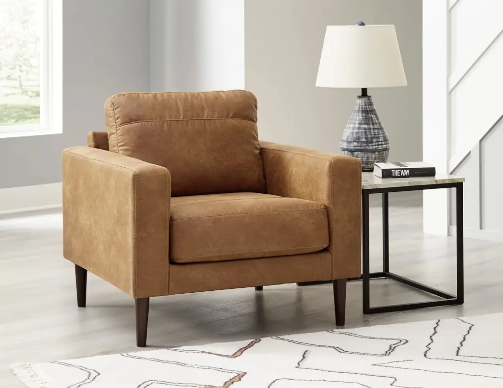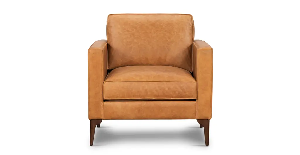 Small-scale style, tailored to perfection. This chair echoes retro aesthetics with warm caramel faux leather, while its ultra-linear silhouette incorporates a contemporary edge. Versatile in form and function, the seat suits styles from modern boho to transitional. And its size helps you to confidently curate your compact space without sacrificing comfort (or your budget).