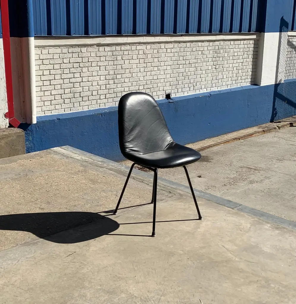 Charles And Ray Eames For Herman Miller Dkx-1 Chair, Black Leather, H-Base, 1955