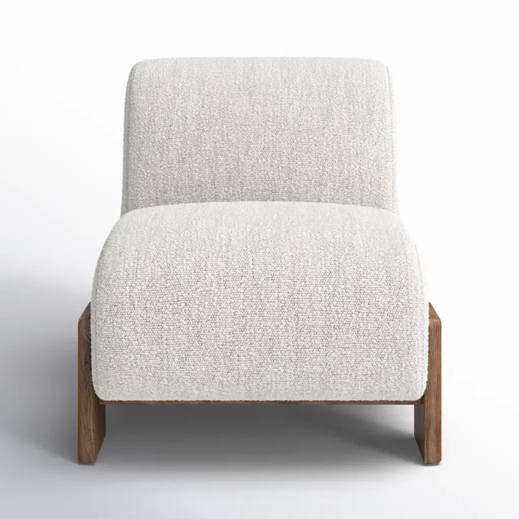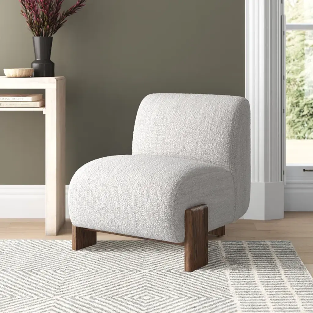 Pure elegance. is the only way to describe our Slipper Chair. Its solid ash wood frame is expertly upholstered in a water-resistant polyester blend, with foam filling for that extra plush feel. The solid color pattern makes it a versatile addition to any room. It's not just a chair, it's a statement piece. Plus, its durable construction means it's built to withstand everyday use. Just imagine curling up with a good book in this chair - pure bliss. And the best part? No assembly required.
