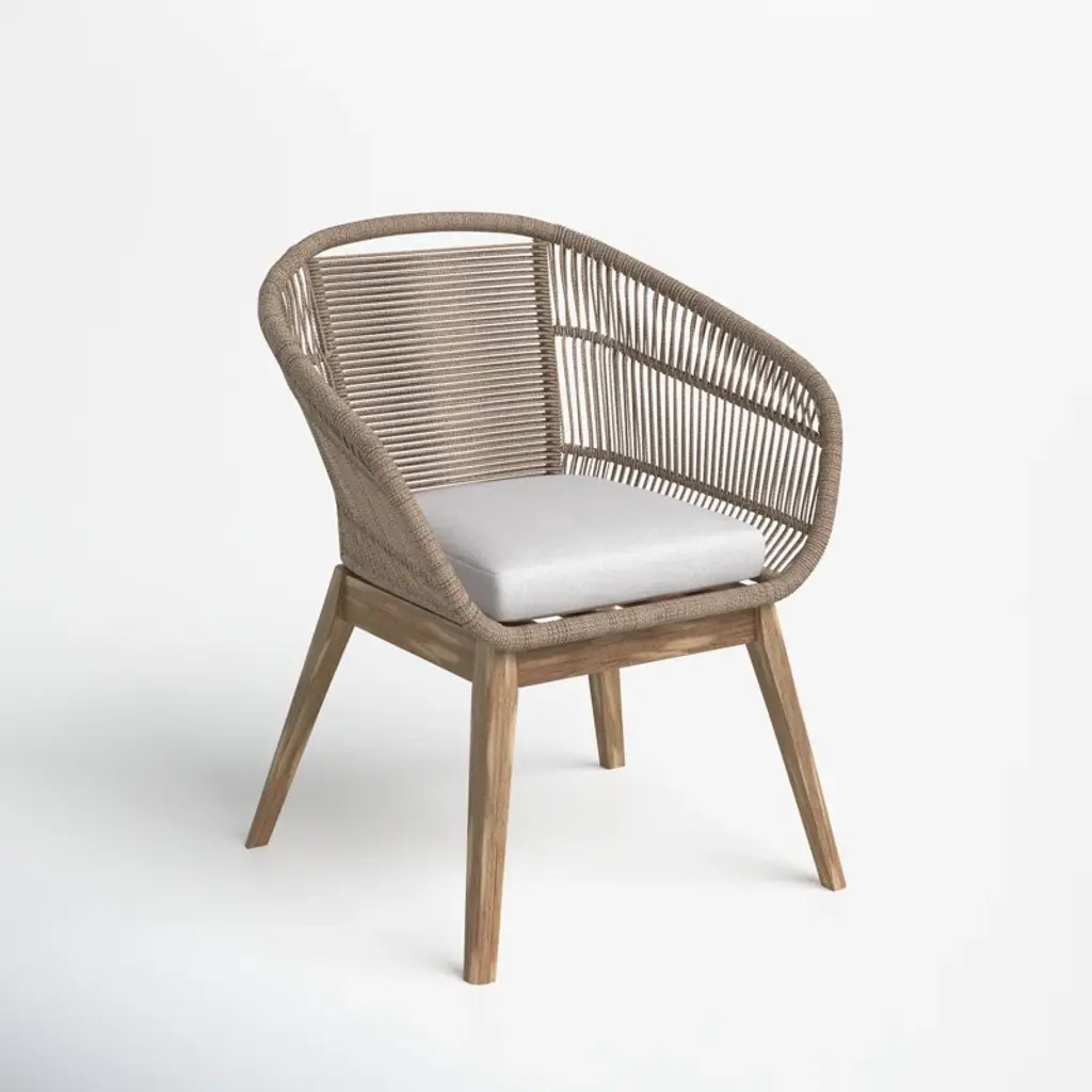 Chemane Indoor/outdoor Dining Chair In Eucalyptus Wood With Rope And Grey Cushion