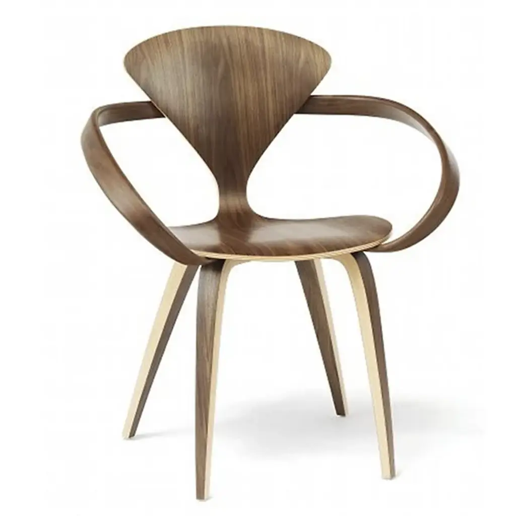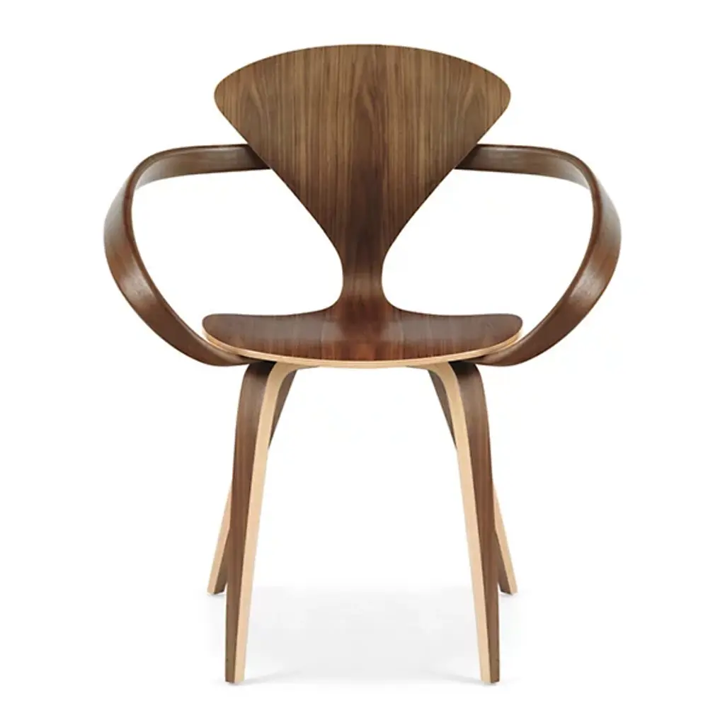 Recreating the iconic sculpted design for modern spaces. The Cherner Armchair by Cherner Chair Company brings an air of sophistication to any dining space. The original design created by Norman Cherner is brought back to life as an ode to the furniture collectors who appreciate distinctive style. Made from molded plywood and solid bent wood, this furniture is heavily influenced by midcentury style. It features gracefully molded arms and legs that bring an elegance and unique style to your home.