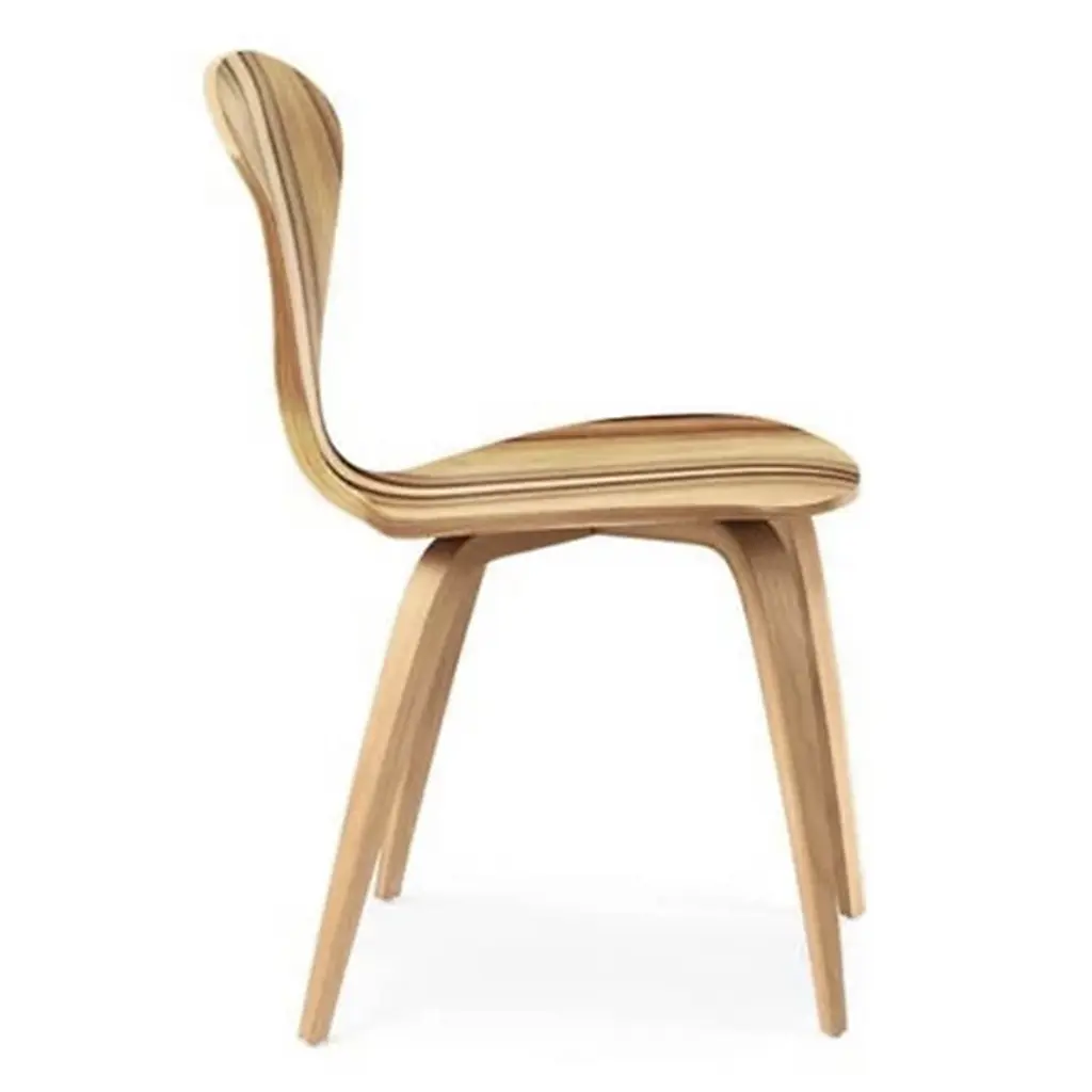 A revision to the 1958 side chair by Norman Cherner. The Cherner Side Chair by Cherner Chair Company is a timeless piece with an heirloom-quality design. The graceful legs are made from plywood. It features a single shell of laminated plywood that forms the seat and back joined together with a narrow waist. The thickness of the seat transitions from 15 plys in the center to 5 plys towards the edge. It imparts a sophisticated touch to your dining setting.