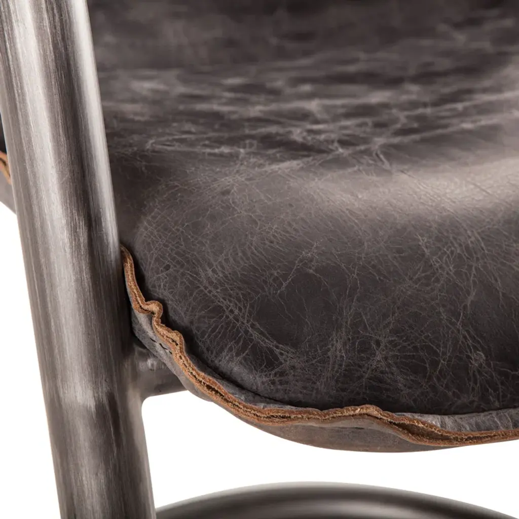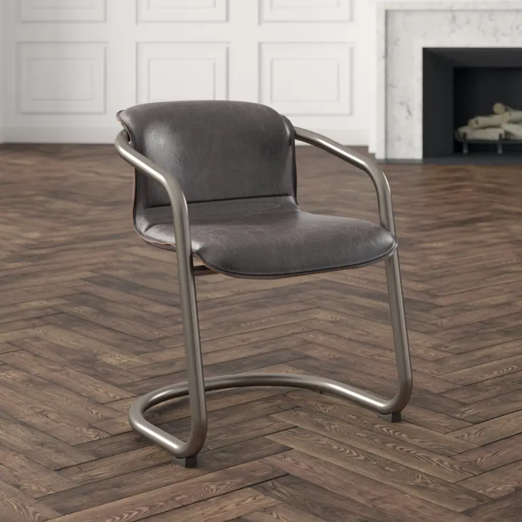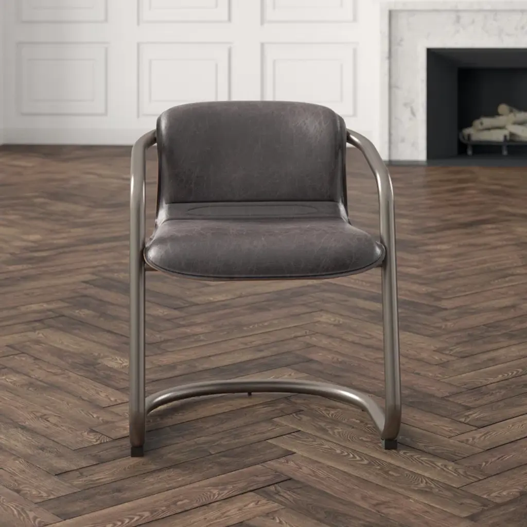 This set of 2 Chiavari Upholstered Dining Chairs will add a vintage charm to your dining or kitchen space. The distressed antique ebony leather seat has a soft hand feel for ultimate comfort, while the exposed trim provides a vintage feel. The U-shaped steel frame in a rustic, distressed antique silver finish includes levelers with caps to protect your flooring. Combine with your favorite dining or kitchen table for a casual dining space, pair with a modern desk for a stylish work-space or add a side table for a comfortable cocktail and reading nook.