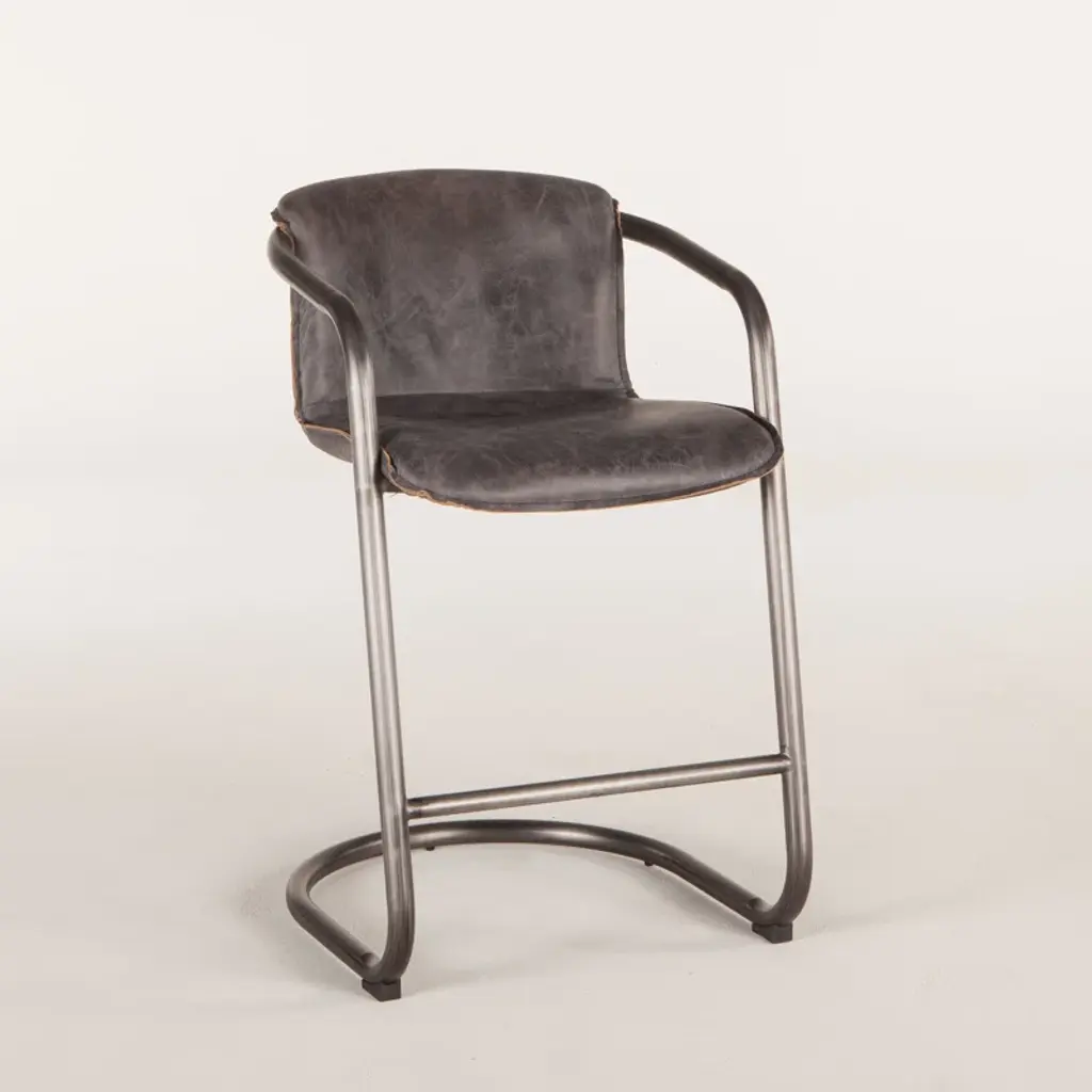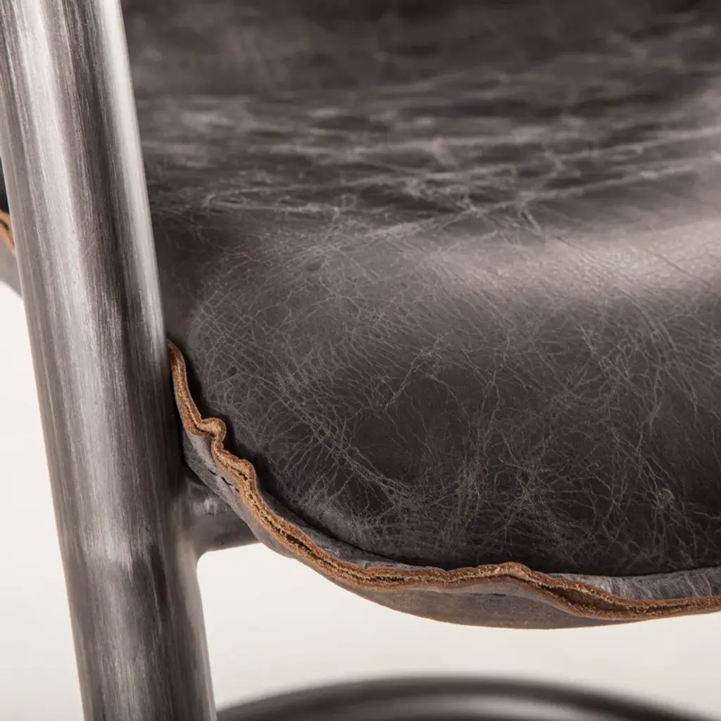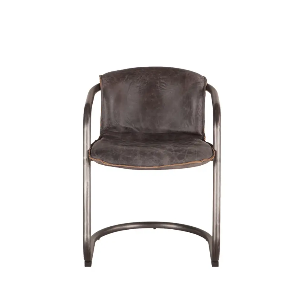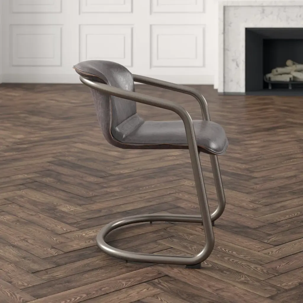 This set of 2 Chiavari Upholstered Dining Chairs will add a vintage charm to your dining or kitchen space. The distressed antique ebony leather seat has a soft hand feel for ultimate comfort, while the exposed trim provides a vintage feel. The U-shaped steel frame in a rustic, distressed antique silver finish includes levelers with caps to protect your flooring. Combine with your favorite dining or kitchen table for a casual dining space, pair with a modern desk for a stylish work-space or add a side table for a comfortable cocktail and reading nook.