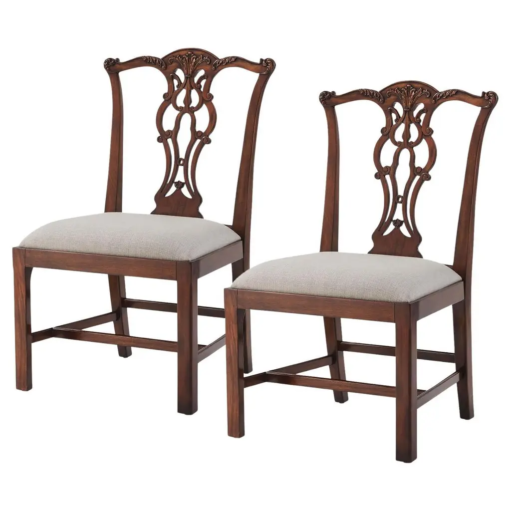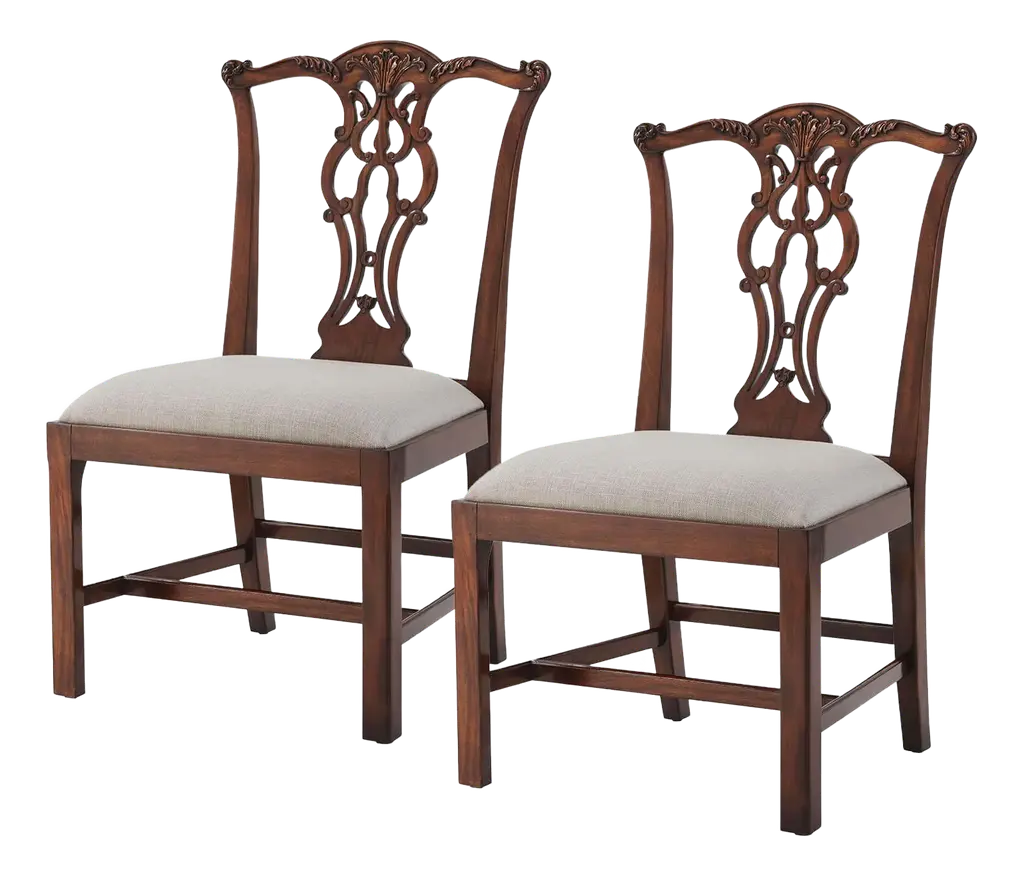 Chippendale Style Carved Mahogany Dining Chairs- Set Of 2