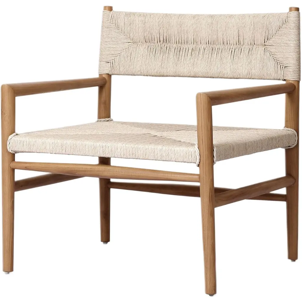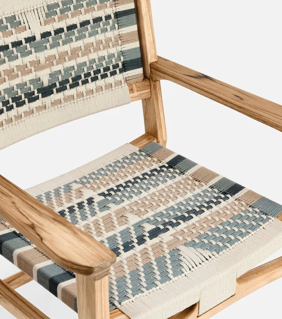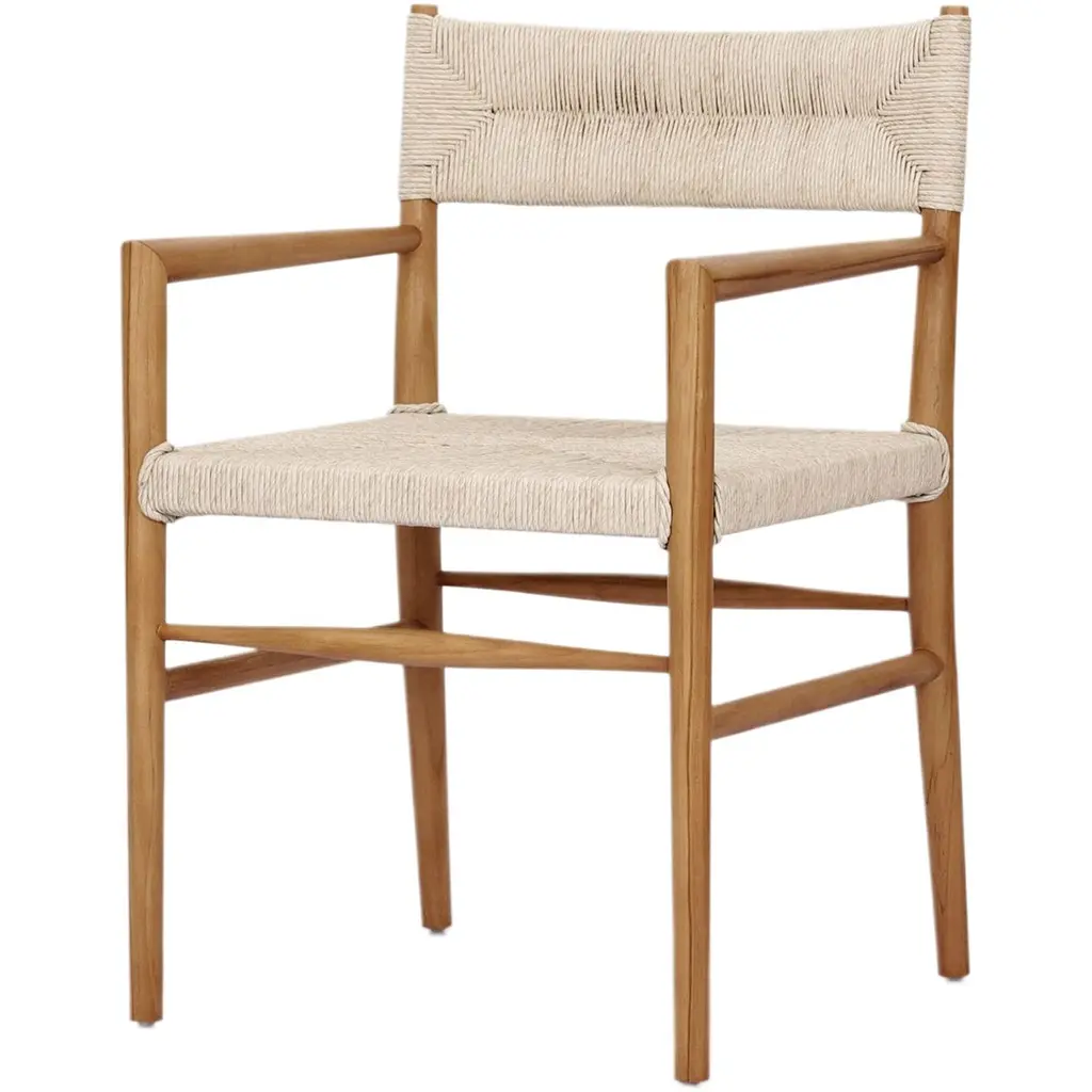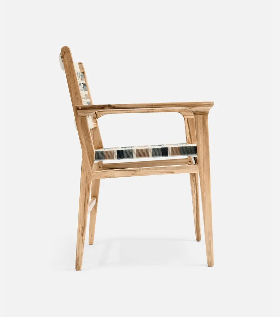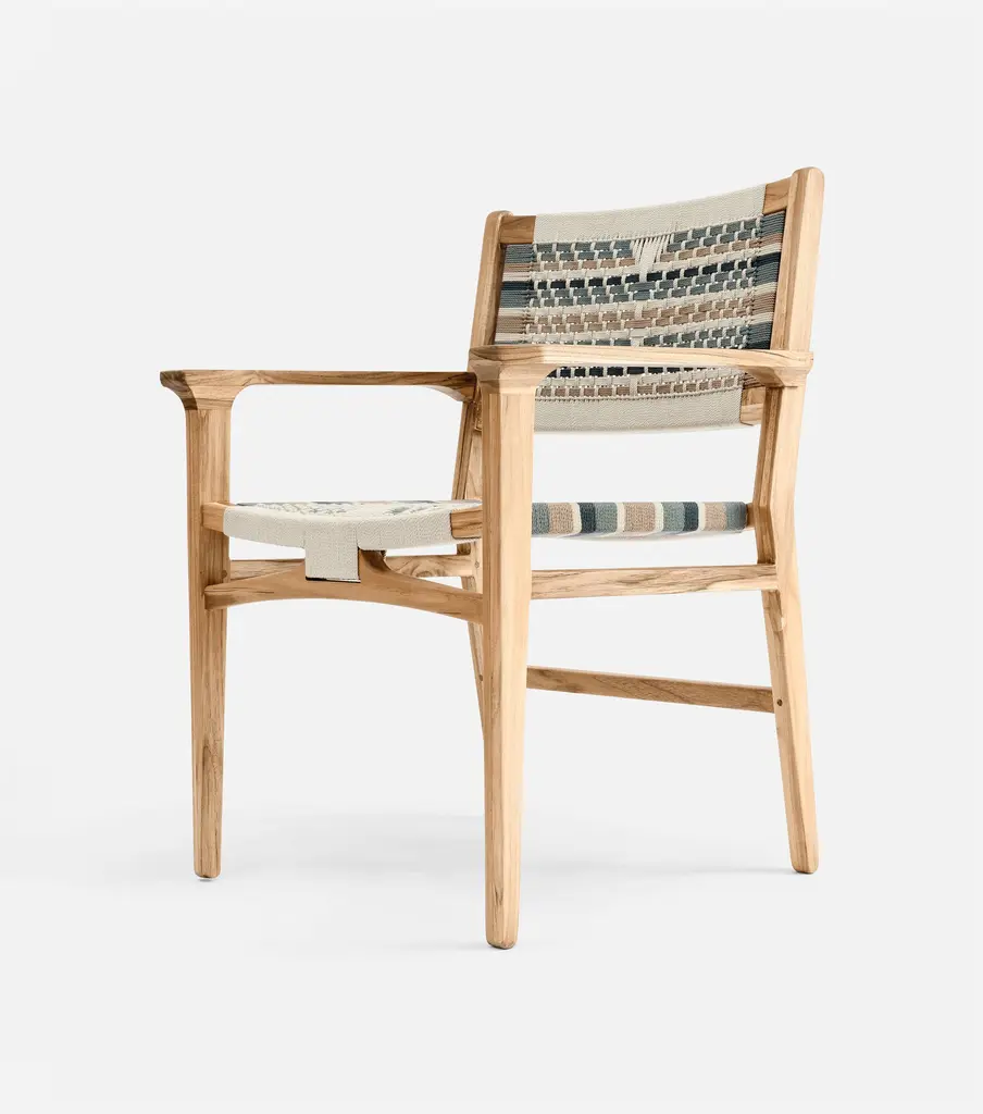 The Chontales Dining Chair with Armrest elevates your dining experience with a design that works for the planet. Handcrafted from FSC®-Certified teak wood with a handwoven cord seat.