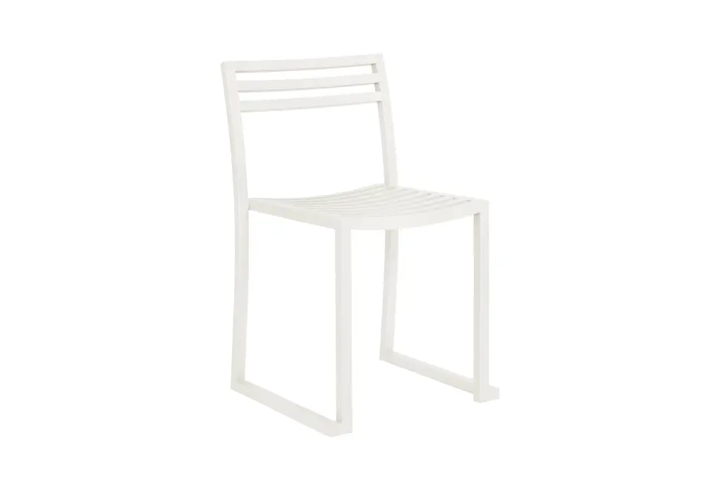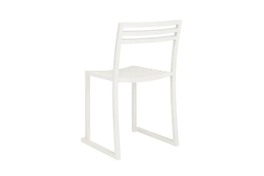 The Chop Chair by Philippe Malouin is an evergreen design conceived for use in a range of public and private outdoor spaces. Beautifully proportioned, with subtle curvatures, it is intentionally simple, in both construction and style. Chop reimagines a classic slatted-chair archetype to create a silhouette that is immediately recognizable, yet pleasingly unknown. The idea for the design was influenced by Malouin’s work in the art world, where he often utilizes hand-led industrial techniques to develop striking forms that accentuate the object's materiality. The Chop collection is cut, bent and welded from durable stainless steel, and is available in a raw, sandblasted or powder-coated colored finish. A design for all seasons, Chop is correctly weighted to resist wind, while still being light enough to move around and stack with ease.