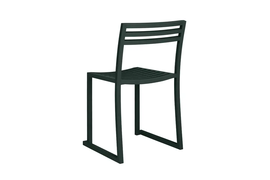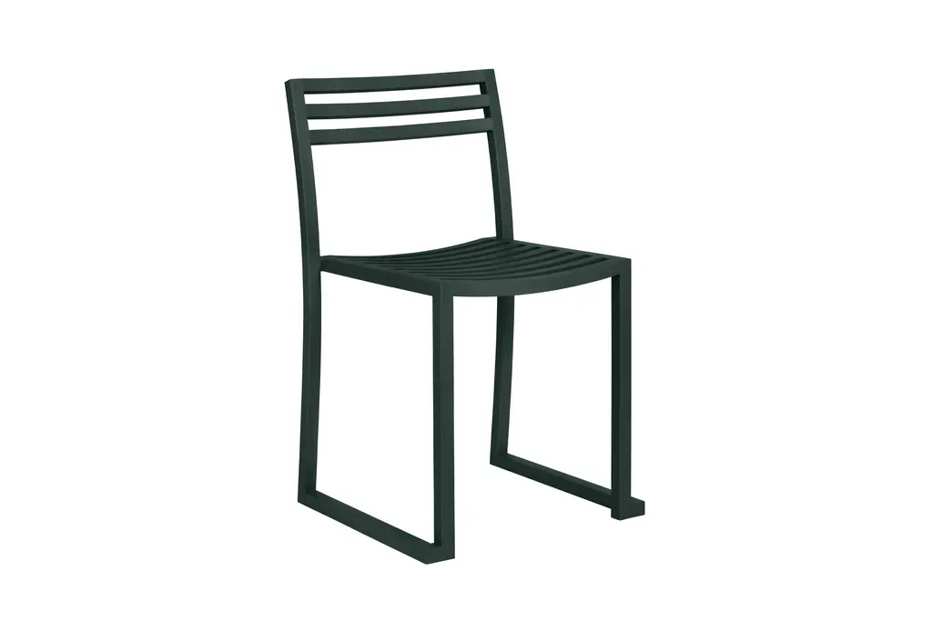 The Chop Chair by Philippe Malouin is an evergreen design conceived for use in a range of public and private outdoor spaces. Beautifully proportioned, with subtle curvatures, it is intentionally simple, in both construction and style. Chop reimagines a classic slatted-chair archetype to create a silhouette that is immediately recognizable, yet pleasingly unknown. The idea for the design was influenced by Malouin’s work in the art world, where he often utilizes hand-led industrial techniques to develop striking forms that accentuate the object's materiality. The Chop collection is cut, bent and welded from durable stainless steel, and is available in a raw, sandblasted or powder-coated colored finish. A design for all seasons, Chop is correctly weighted to resist wind, while still being light enough to move around and stack with ease.
