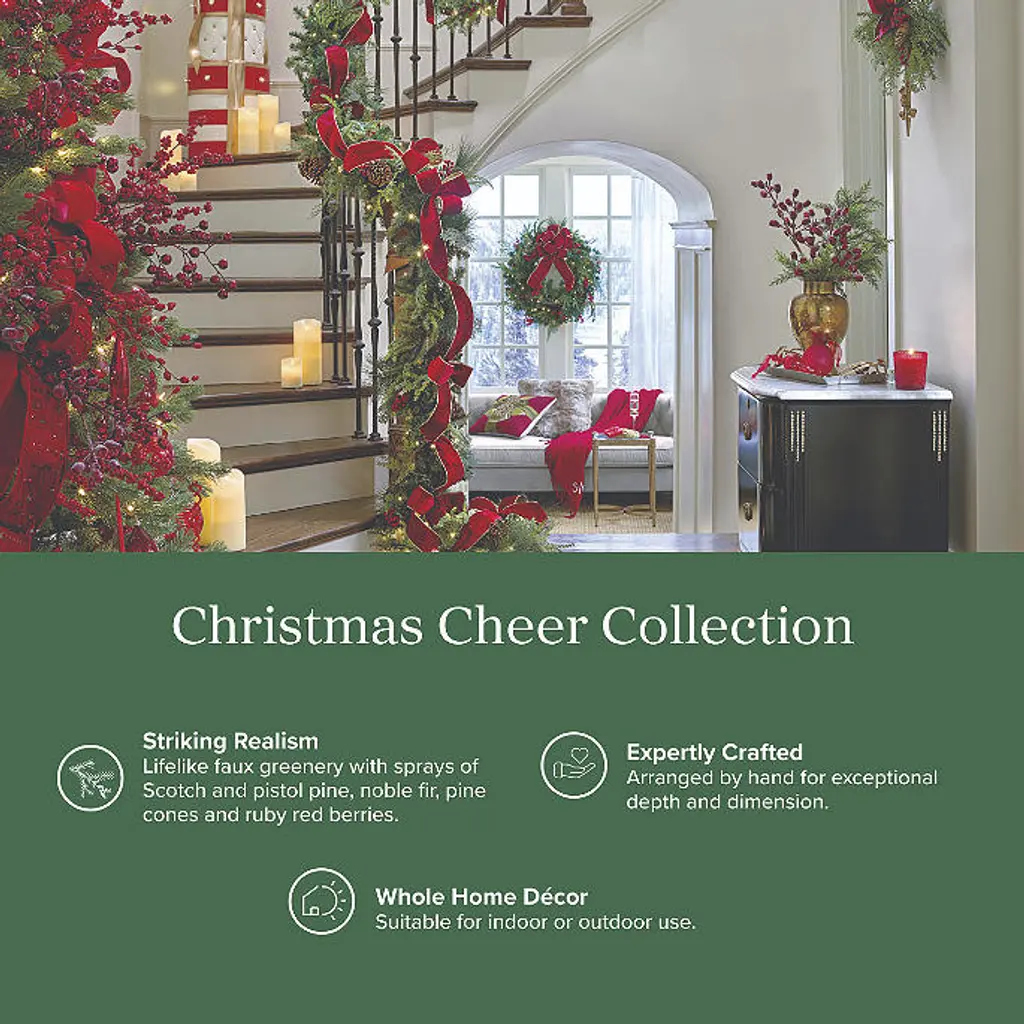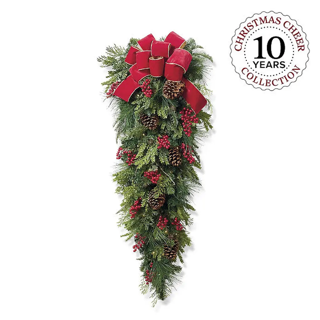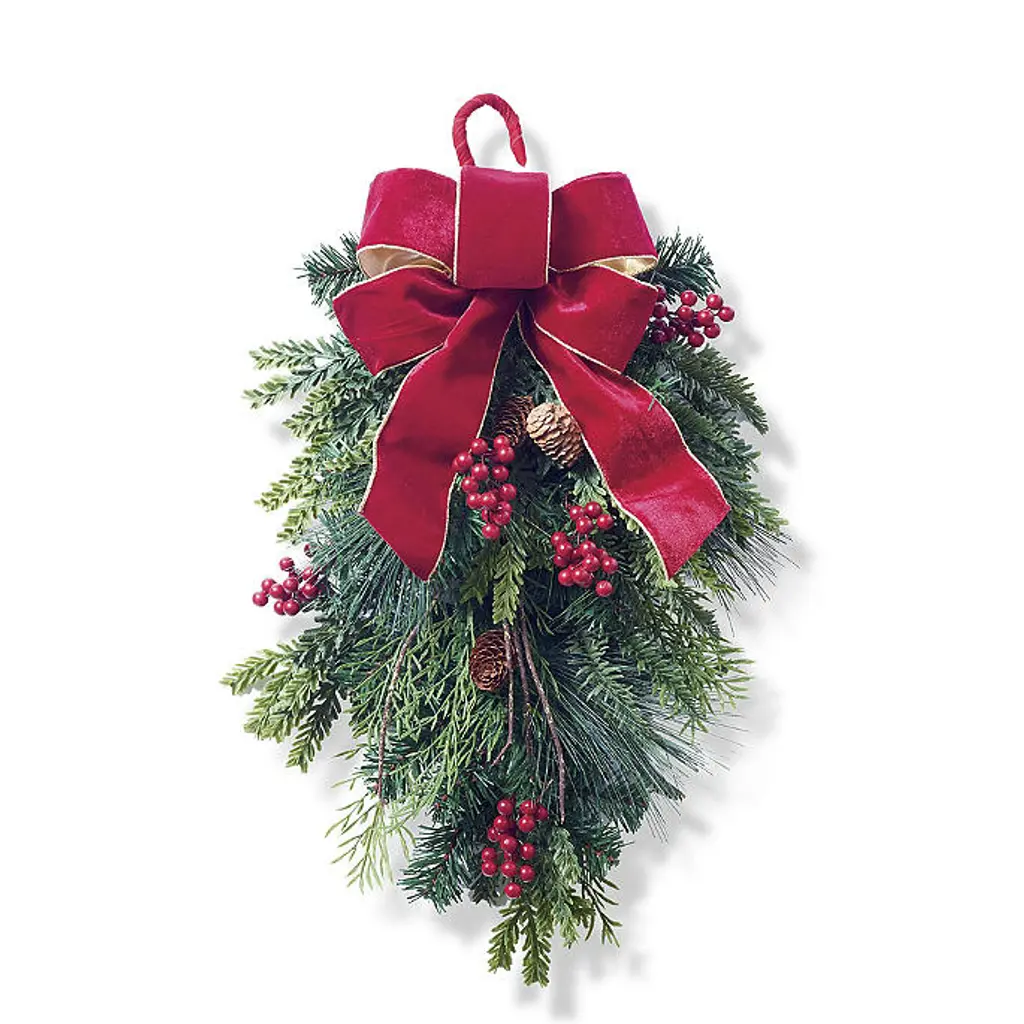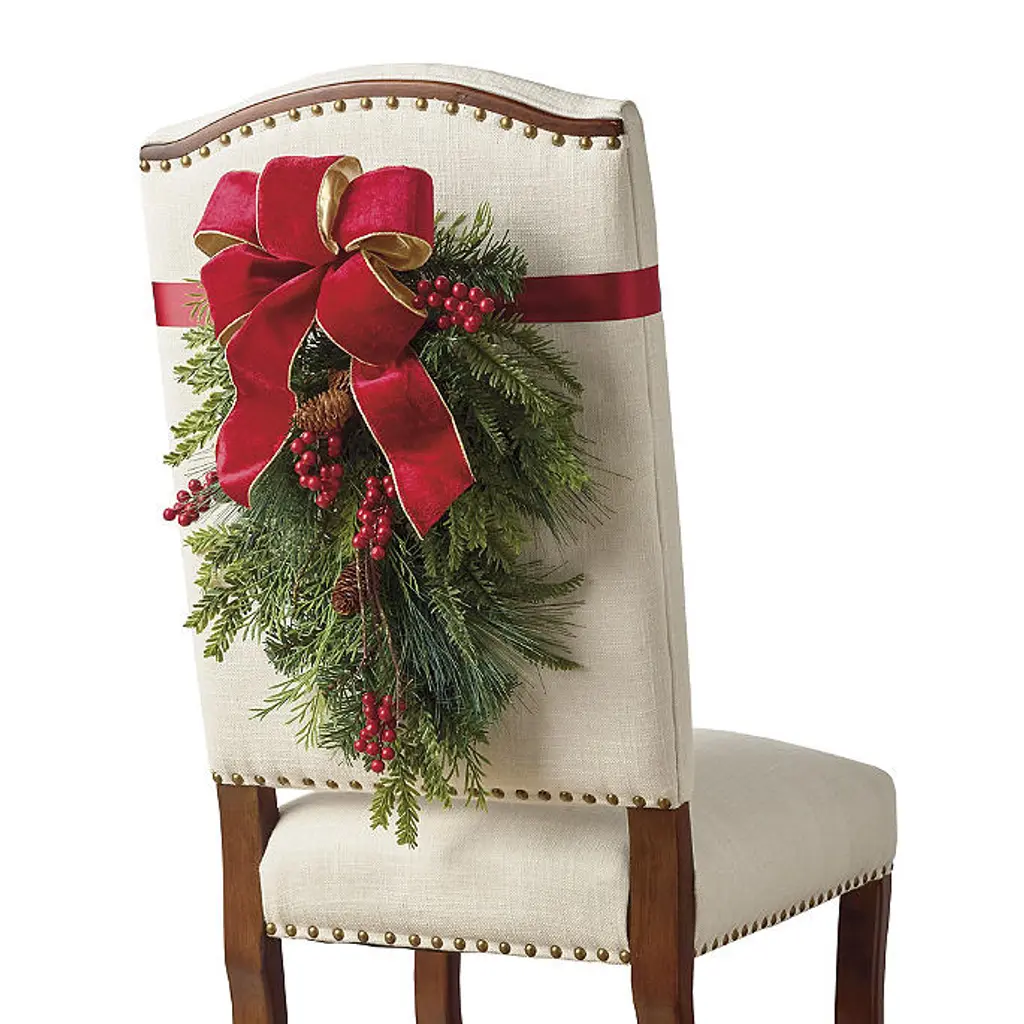 Leave no surface undecorated, including the dining chairs. Add unexpected elegance to the table with an elegant chair back swag, crafted from lifelike cypress tips, red berries and pine cones, and finished with a length of velvet ribbon. Suitable for indoor or outdoor use To maximize the life of your greenery, we recommend a limit of 3 months of outdoor exposure per year Lifelike cypress tips, red berries, pine cones and polyester velvet ribbon Imported A Frontgate exclusive. At Frontgate, our primary focus is quality. We guarantee that every product we sell will stand up to the supreme test – our customers' satisfaction. To learn more about our policies, visit our Shipping & Processing, Returns & Exchanges and Warranty & Price Guarantee pages.