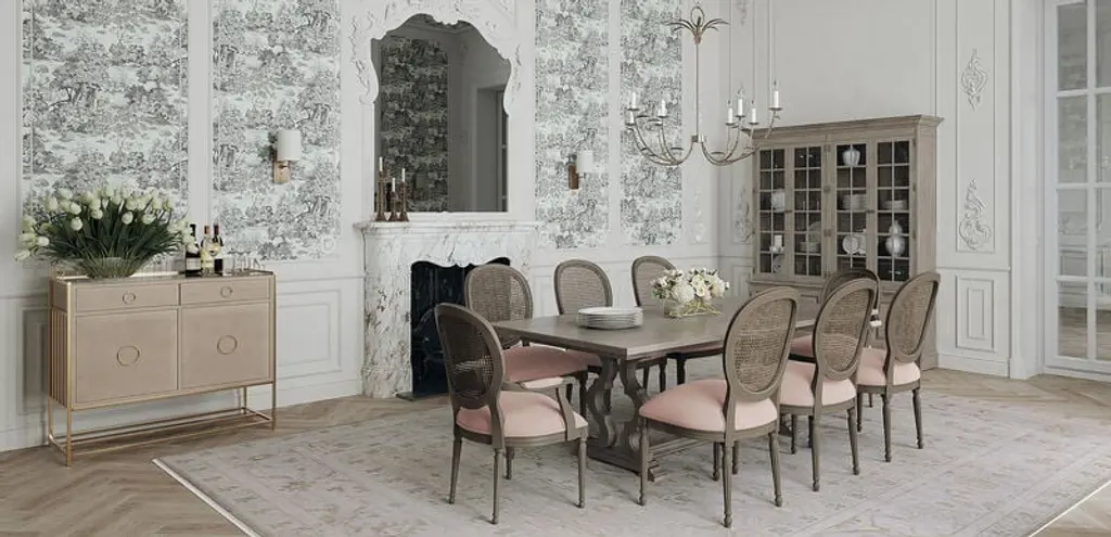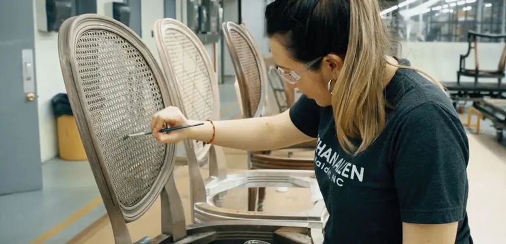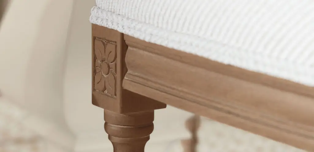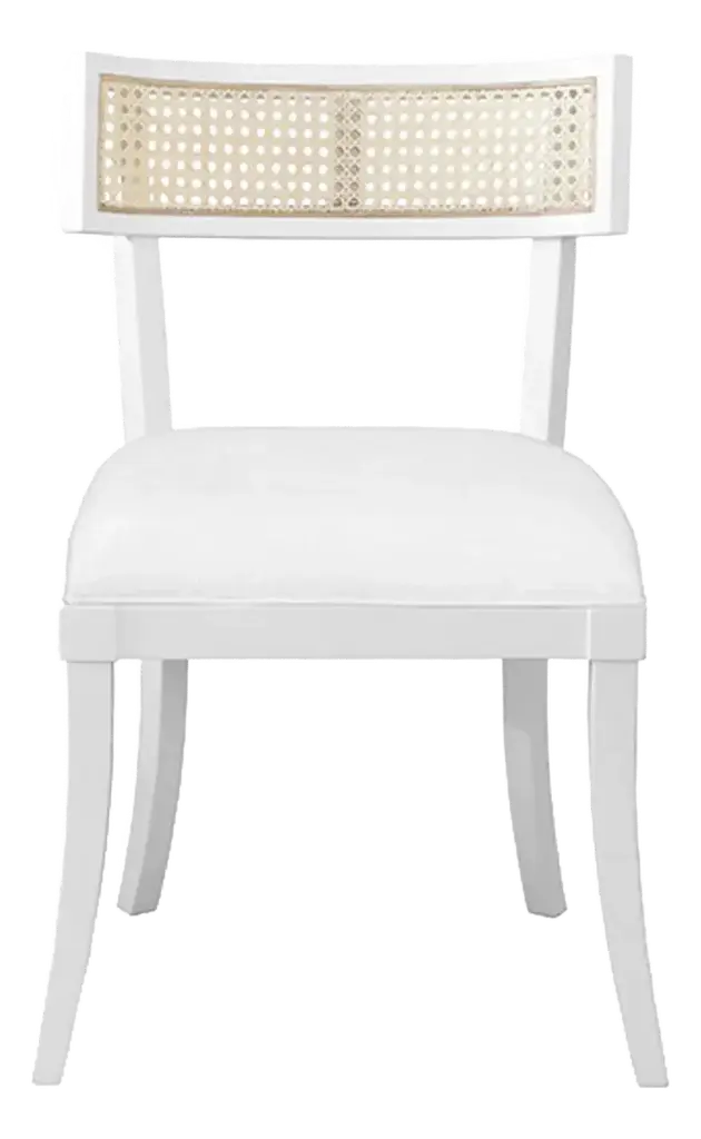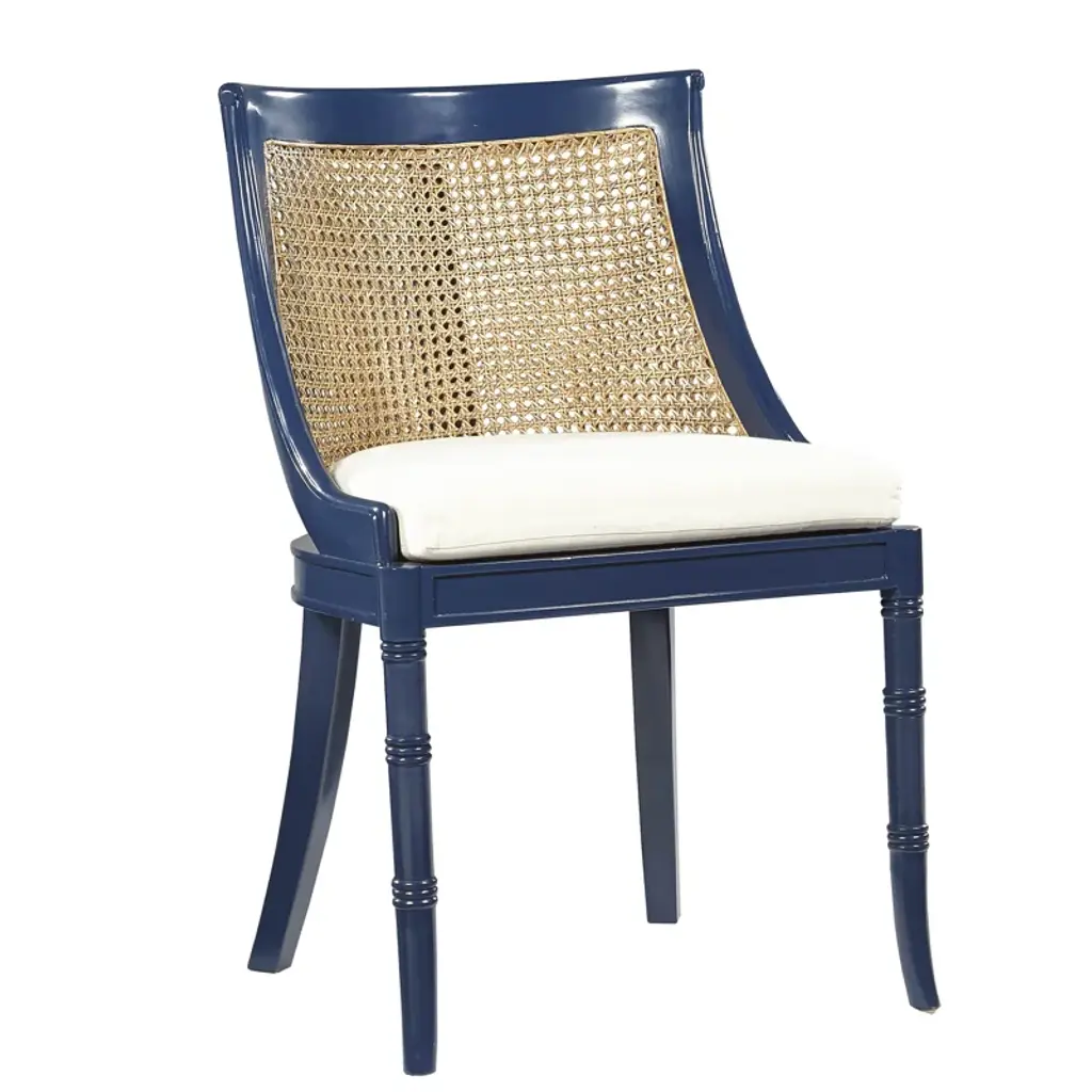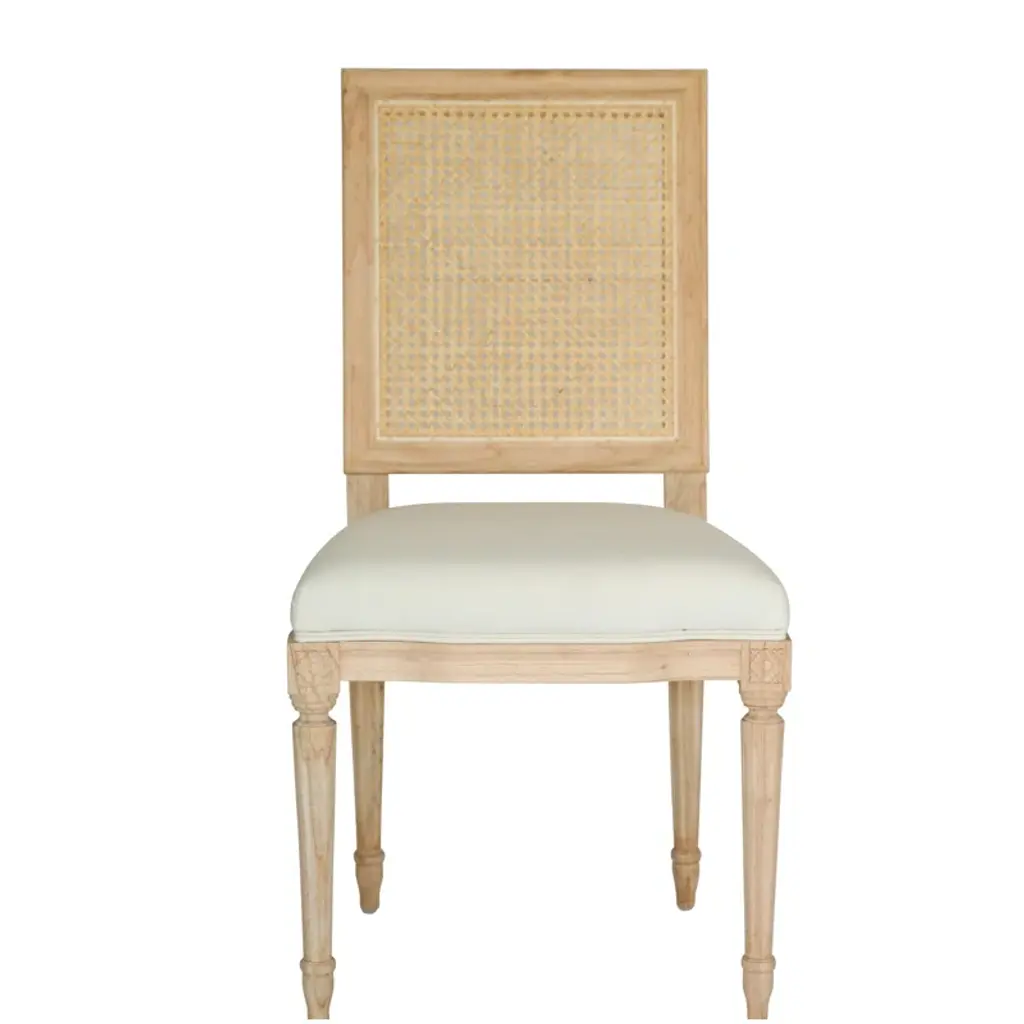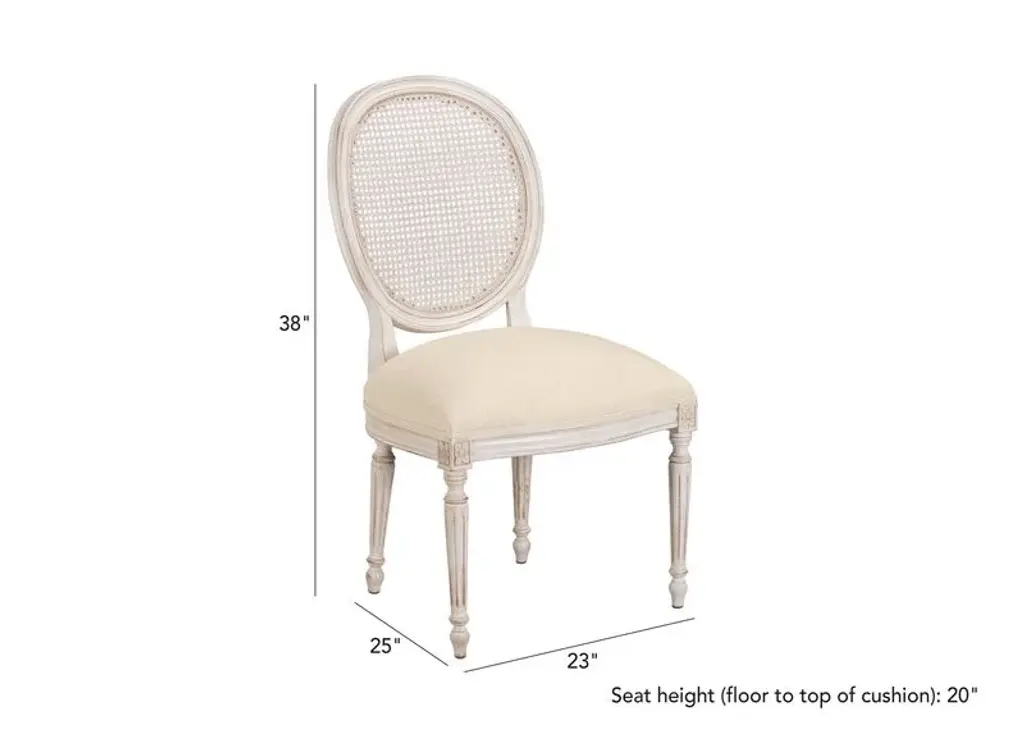 Refined without ruffles. You'll be sitting pretty on this French-inspired chair. The cane back gives the piece an air of lightness. To bring in a garden feeling, you might choose to have the cane hand-painted with a lattice pattern. With exquisite hand-detailing and double-welting.