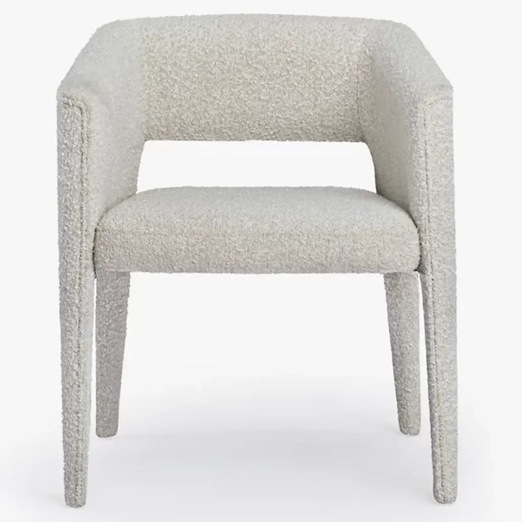 The Cimarron Dining Arm Chair from Alder & Ore is a sculptural embrace. Its robust and refined rubberwood frame cradles an upholstered seat, offering a tactile journey for the senses. The chair's arms sweep out welcomingly, transforming each meal into a ceremony of comfort. This is a throne for everyday royalty, turning simple dinners into regal affairs. The Cimarron Dining Arm Chair uplifts you, both physically and aesthetically.