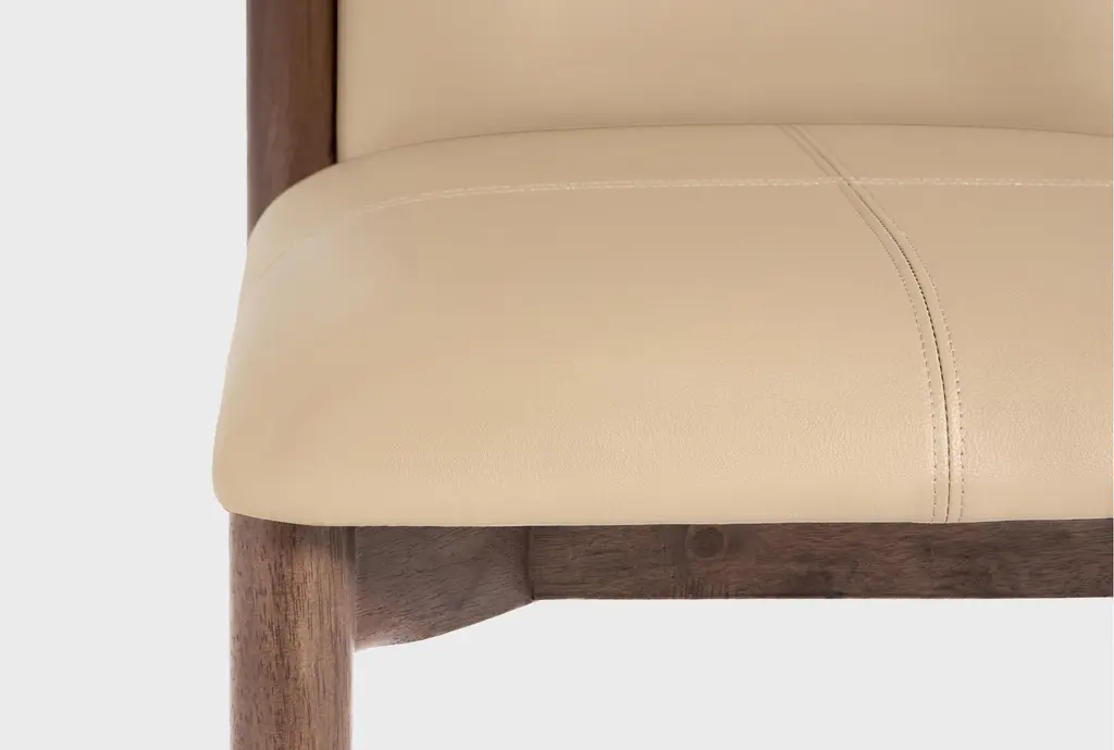 Bring a modern organic aesthetic to your space with our uniquely chic Citra faux leather dining chair. High-quality materials like solid mango wood, mango veneer and faux leather lend durability and beauty, while premium craftsmanship ensures true longevity. With natural variations in the wood color and grain, this piece is authentically one-of-a-kind. The tan faux leather upholstery offers a light, casual look you'll love.