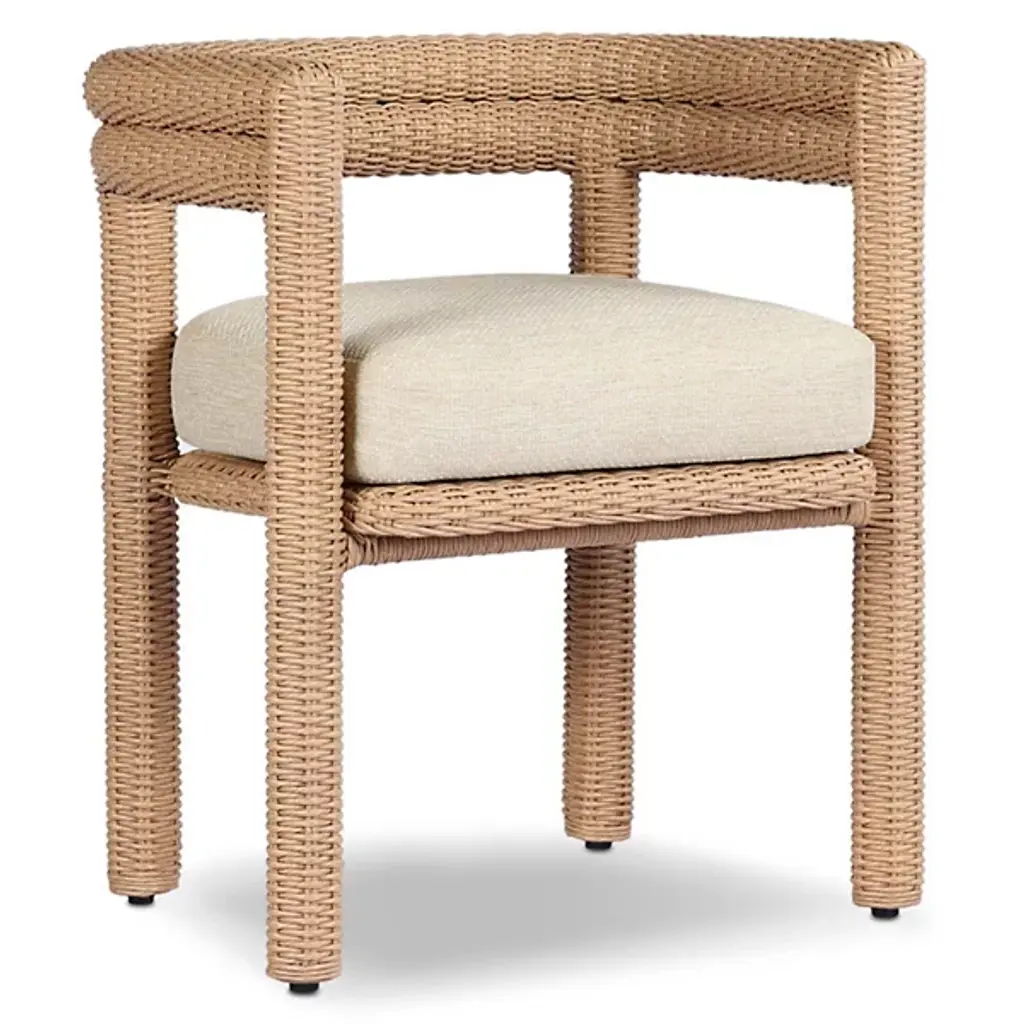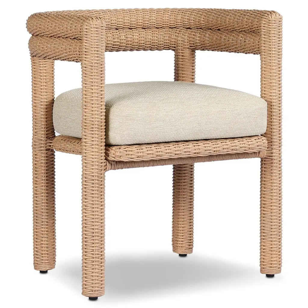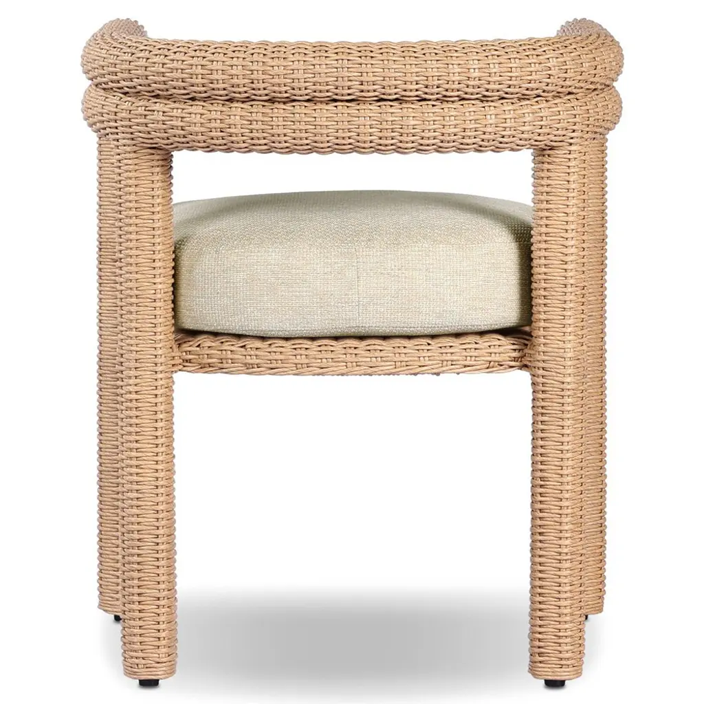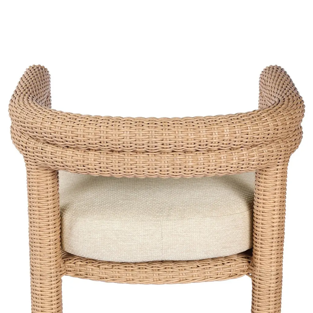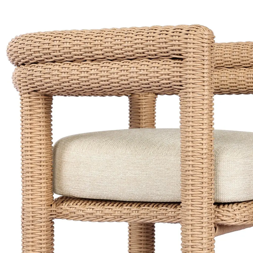 Claire Coastal Beach Cream Woven Wicker Outdoor Dining Arm Chair