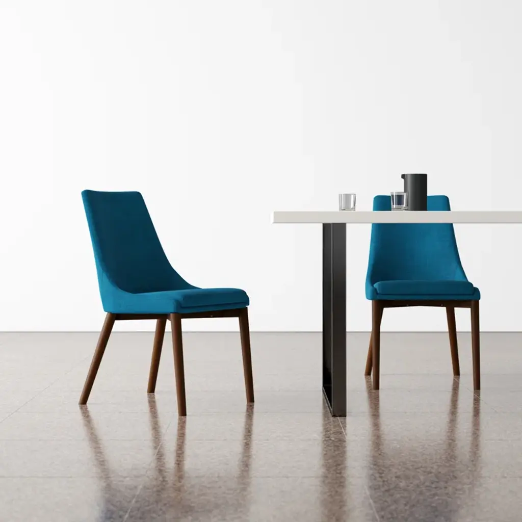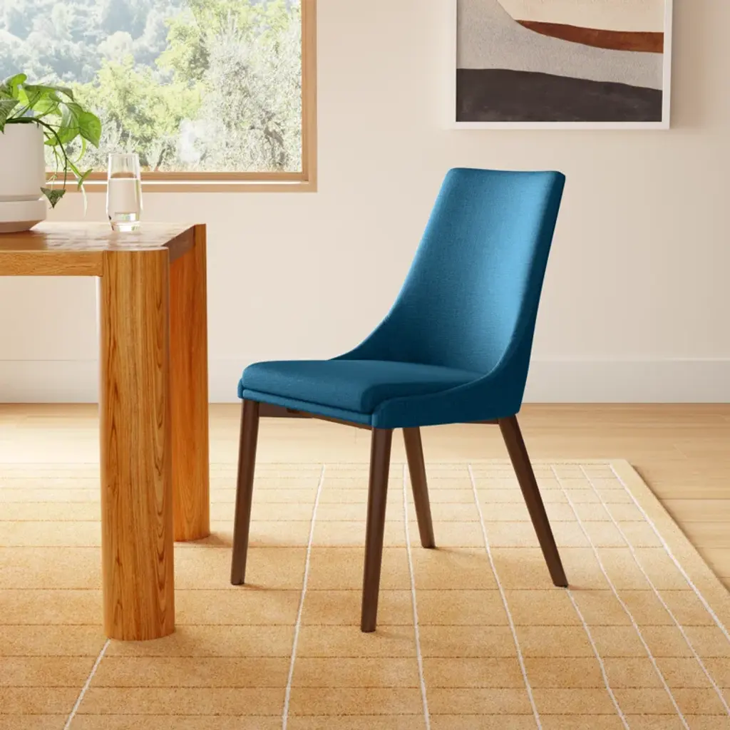 Clean lines, textured woven upholstery, and an armless frame add an elevated modern style to any dining room or kitchen. The gently contoured full-back offers comfort, while the wooden tapered legs – crafted from solid walnut –speak to the chair’s mid-century modern influence. Bonus: The seat cushion is zippered, making cleanup a cinch. A real win-win.