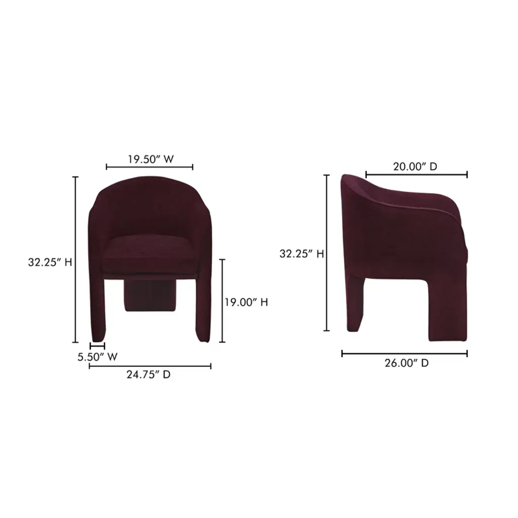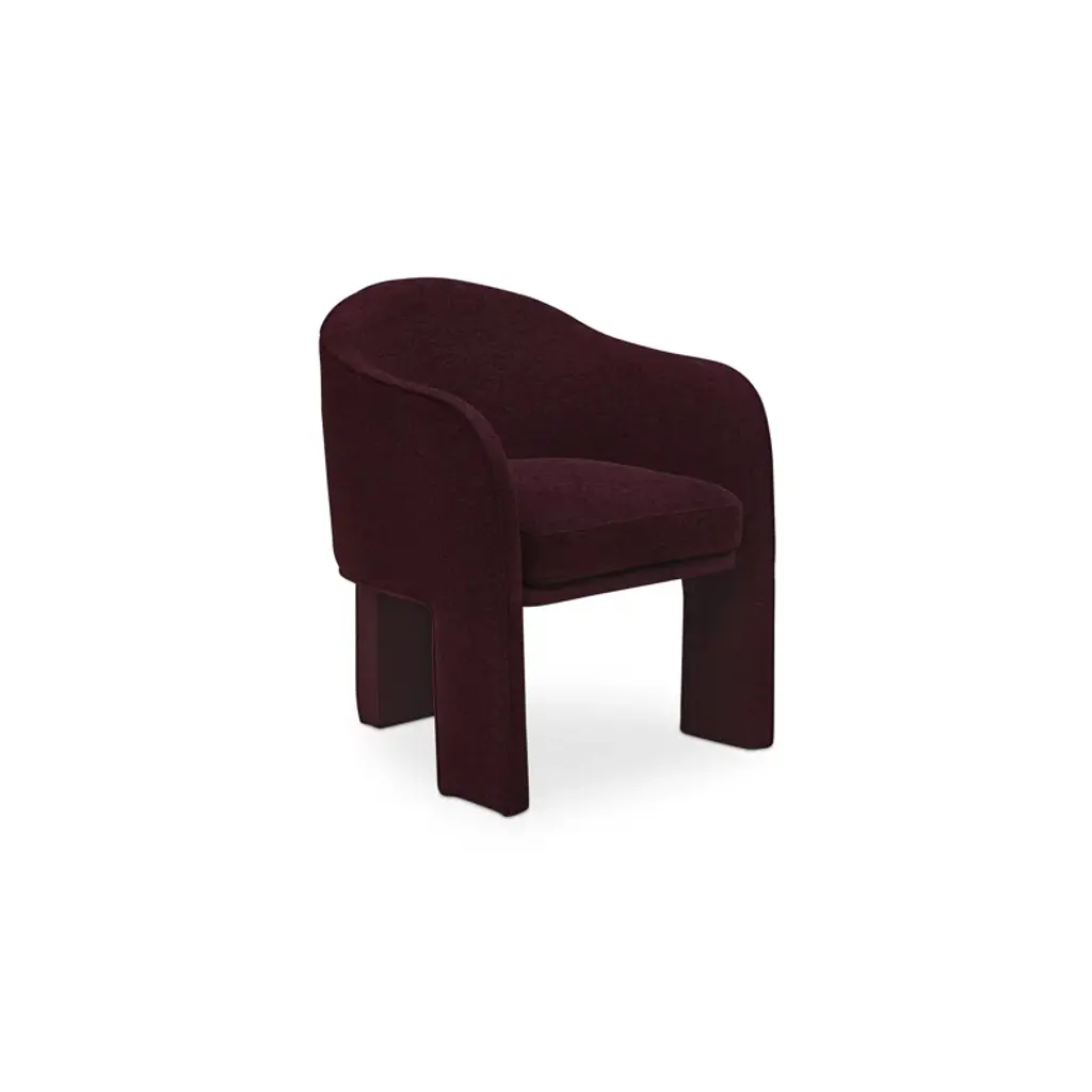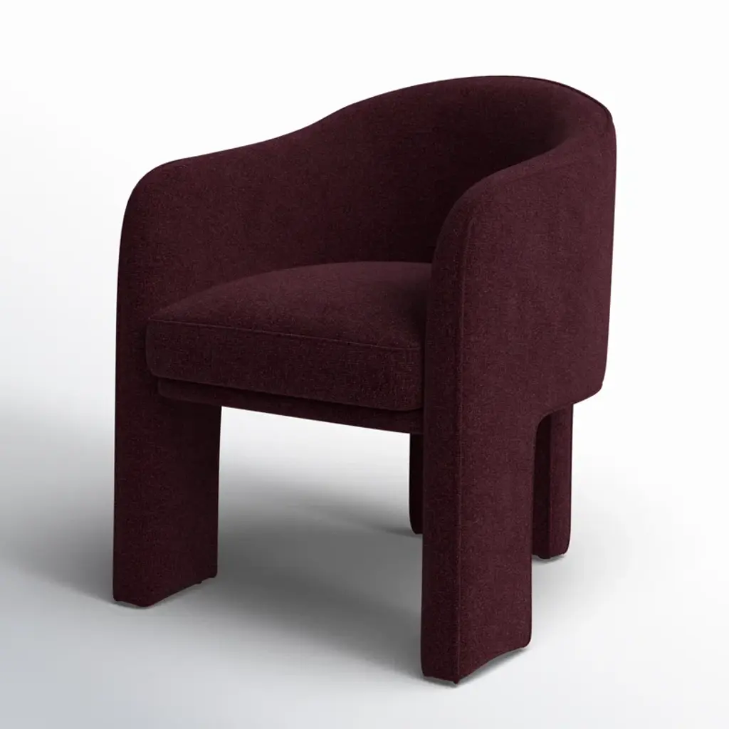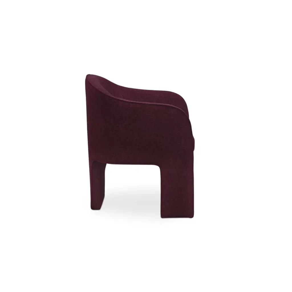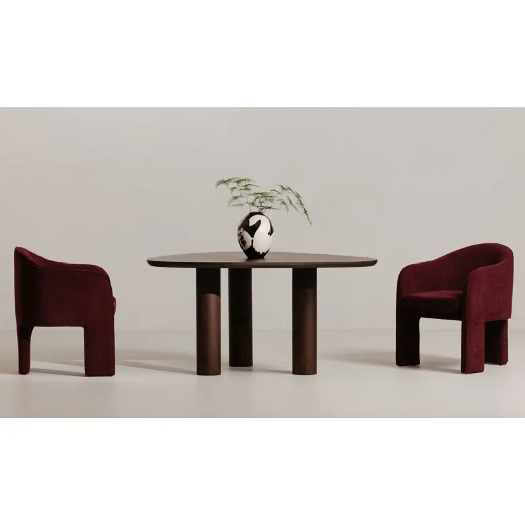 Fully upholstered in easy-to-clean performance fabric and generously sized, the Clara dining chair is all about comfort with a thoughtfully rounded back and gently curved armrests that add a touch of elegance and femininity. The sleek and minimalistic 3-legged base provides a clean and refined foundation.