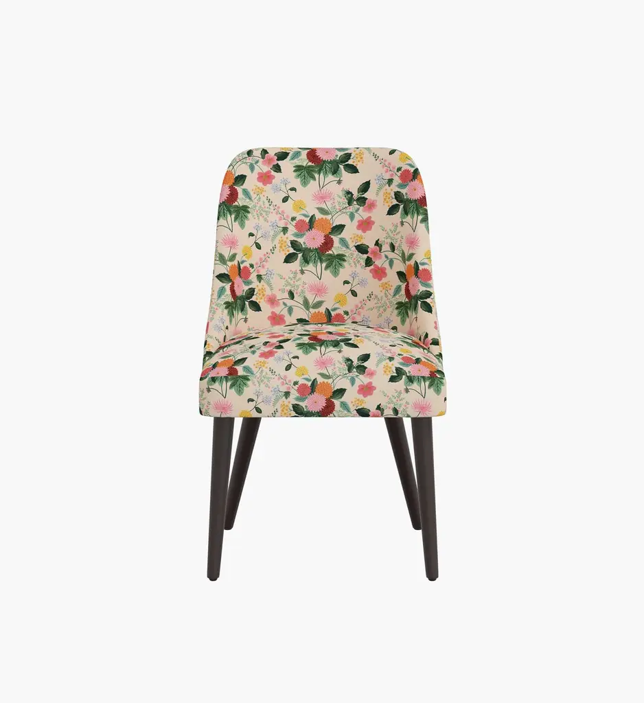 The Clare Dining Chair is our modern take on a mid-century classic, with round tapered legs that create a vintage silhouette. Select from 17 illustrated fabrics for your made-to-order piece, crafted in Chicago by Cloth & Company.