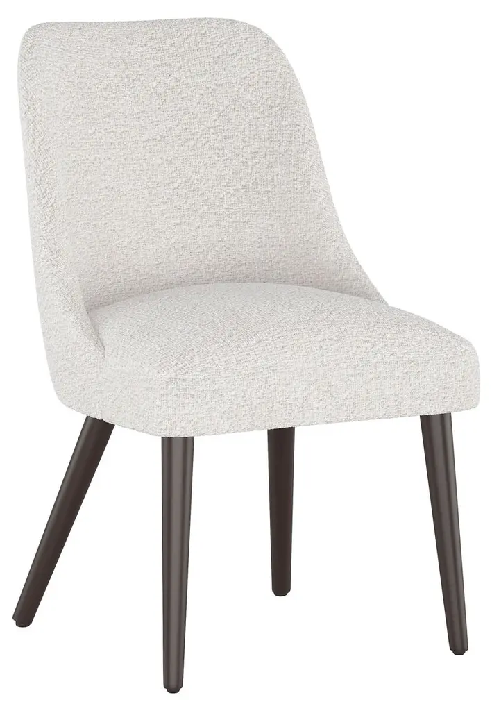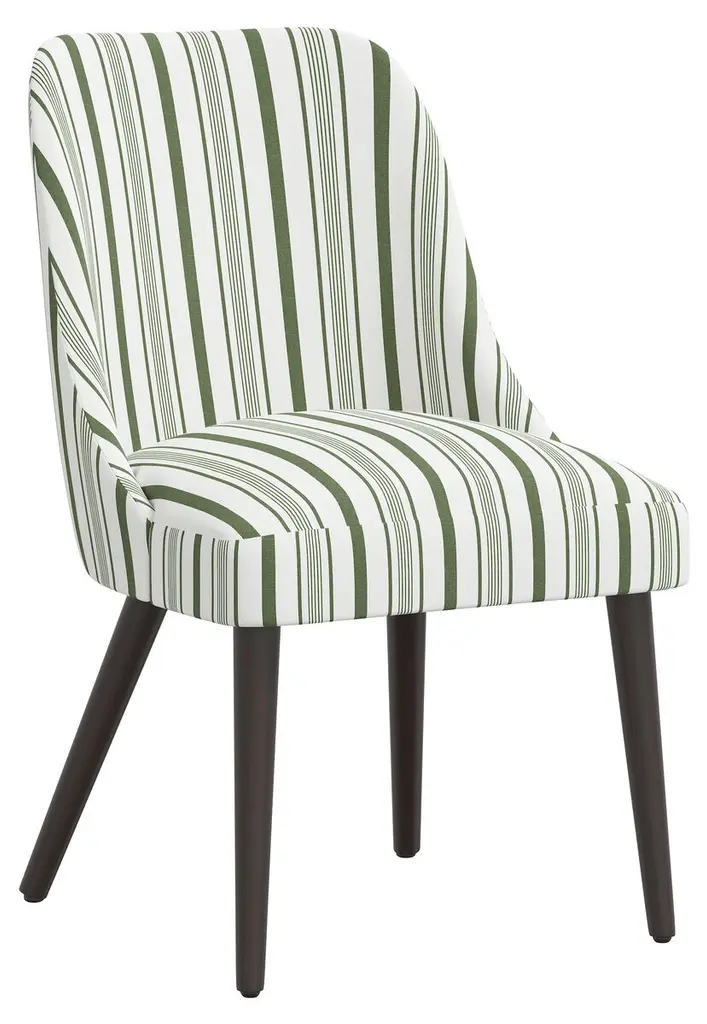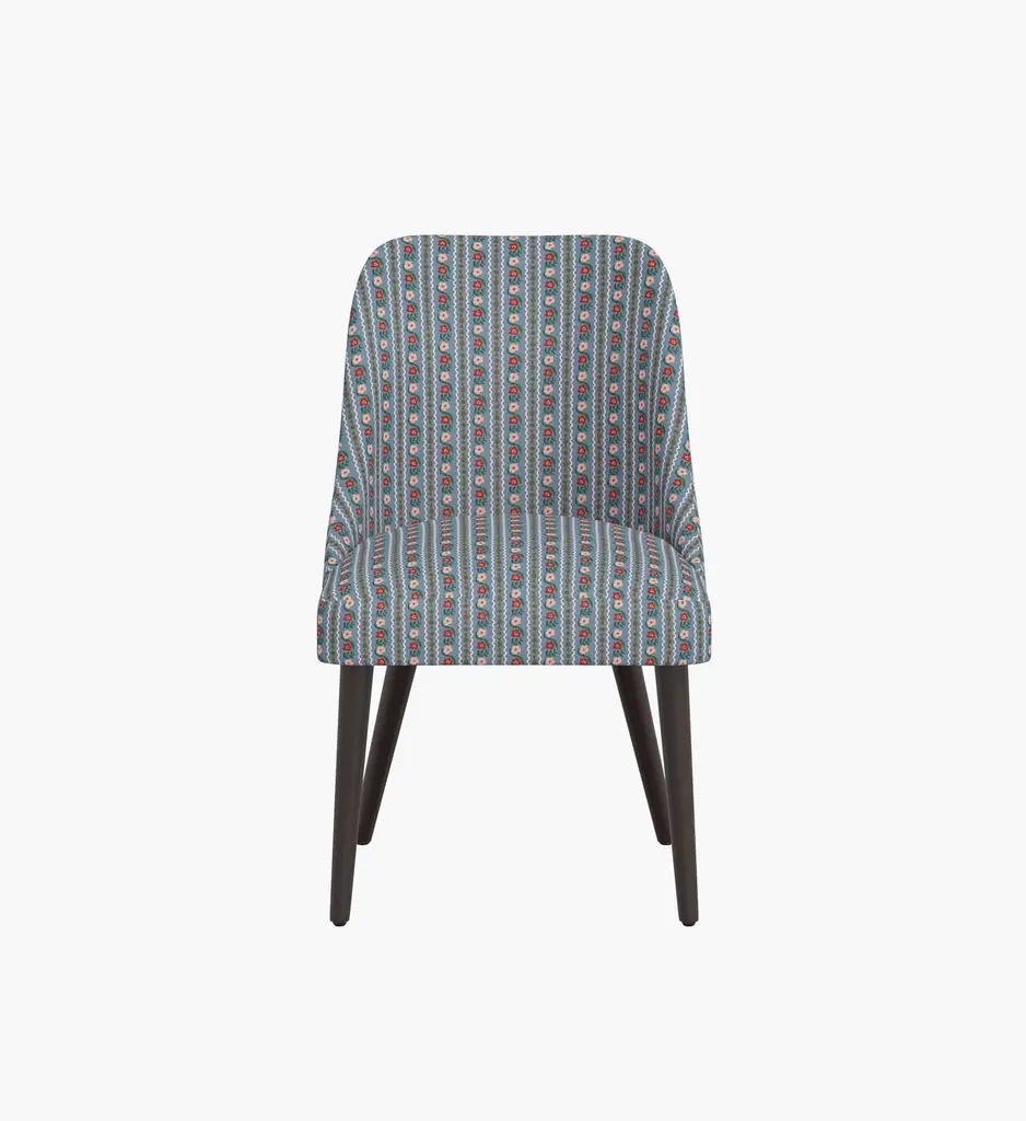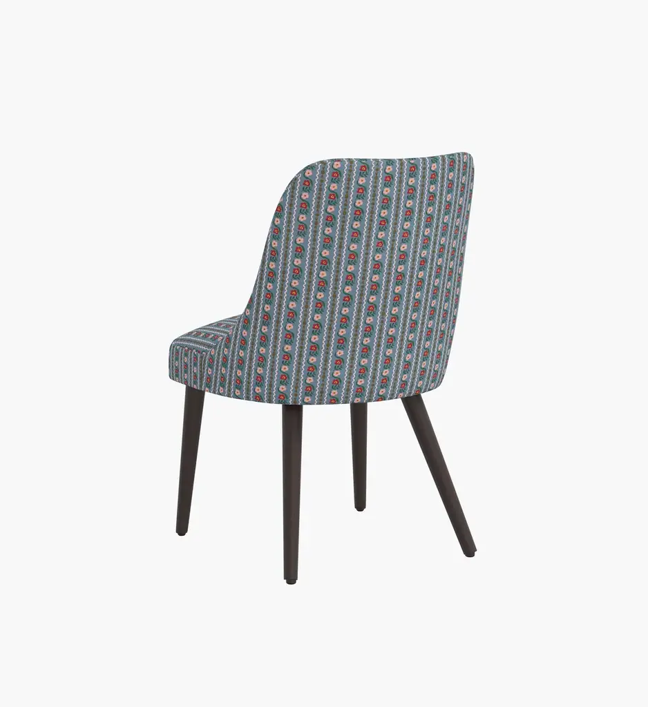 The Clare Dining Chair is our modern take on a mid-century classic, with round tapered legs that create a vintage silhouette. Select from 17 illustrated fabrics for your made-to-order piece, crafted in Chicago by Cloth & Company.