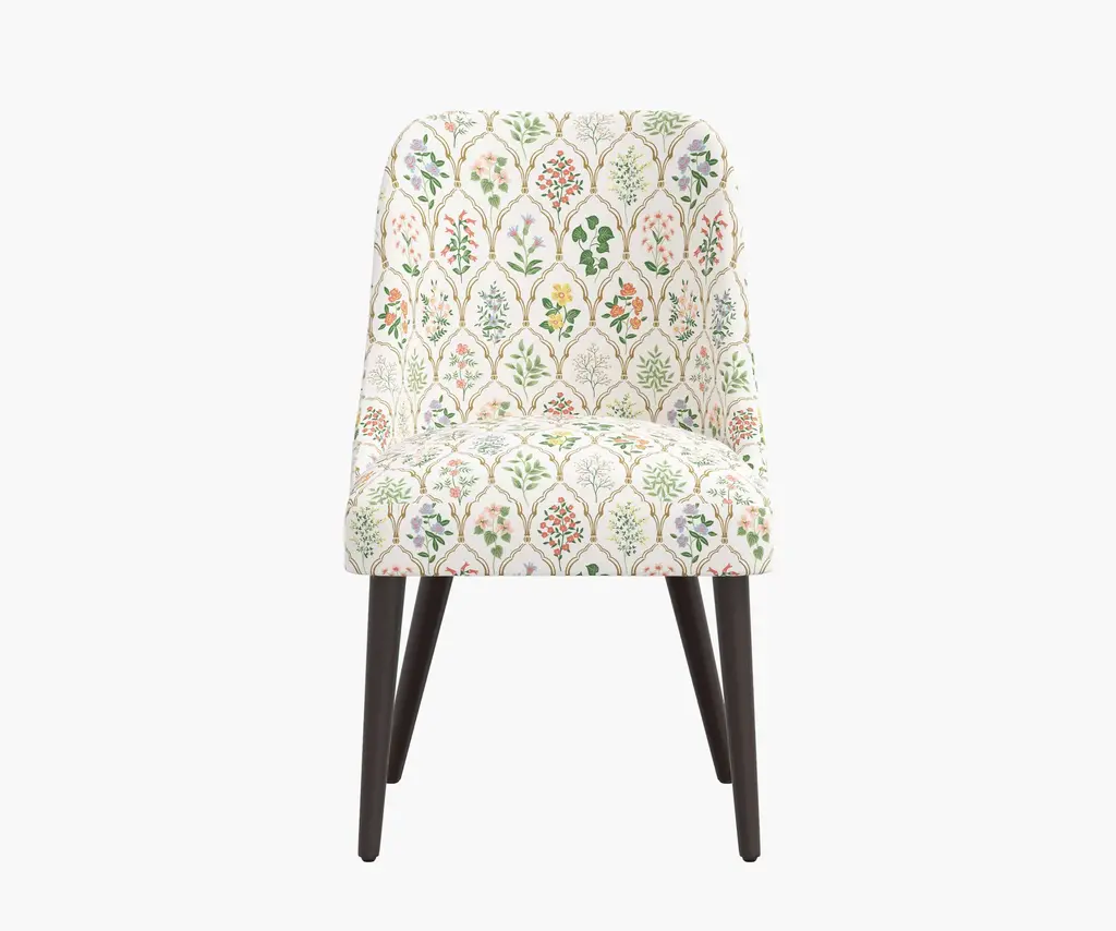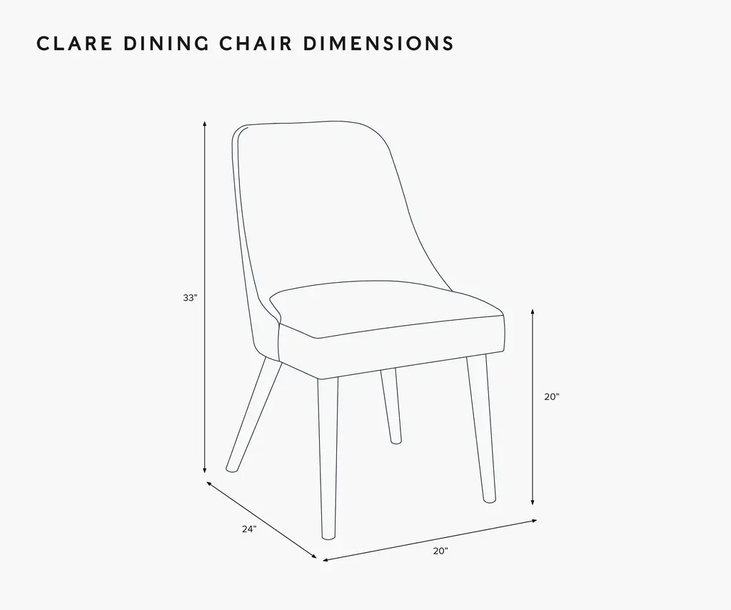 The Clare Dining Chair is our modern take on a mid-century classic, with round tapered legs that create a vintage silhouette. Select from 17 illustrated fabrics for your made-to-order piece, crafted in Chicago by Cloth & Company.