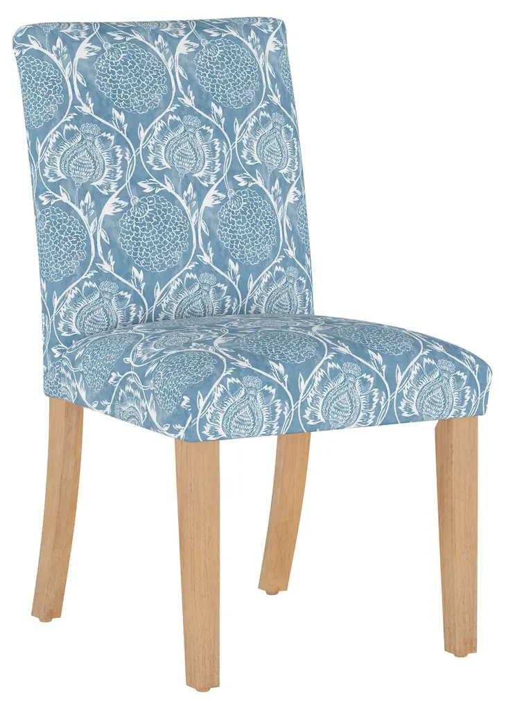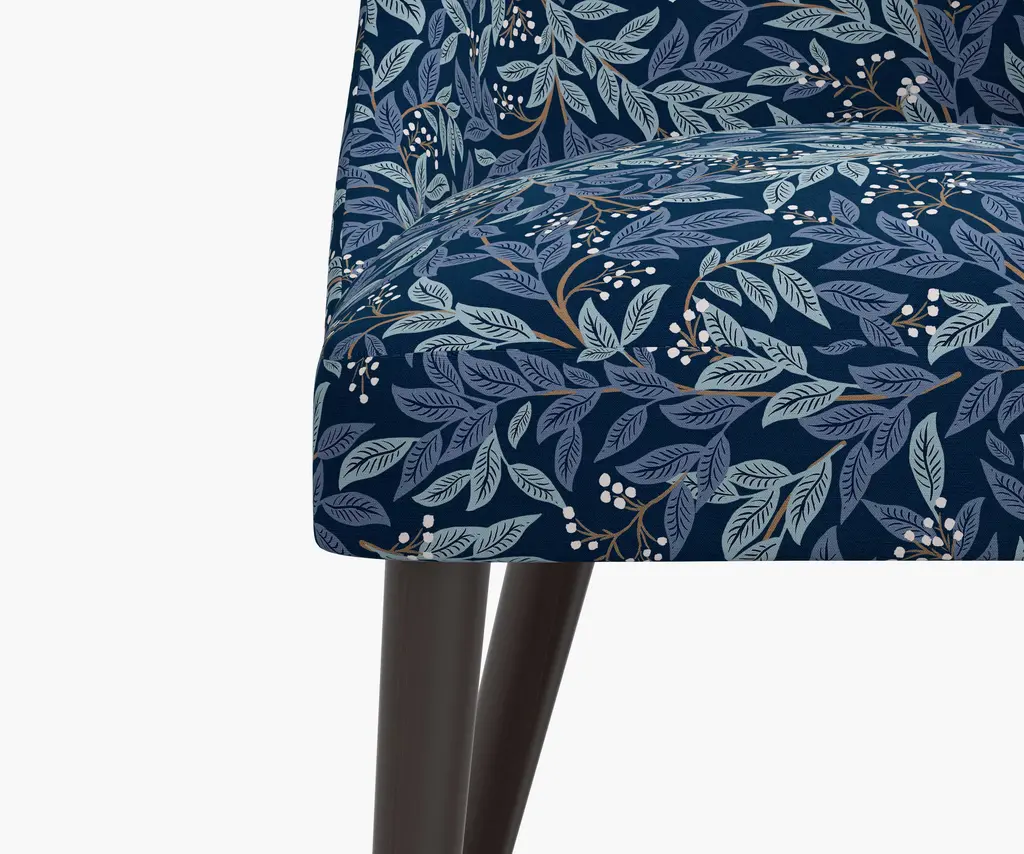 The Clare Dining Chair is our modern take on a mid-century classic, with round tapered legs that create a vintage silhouette. Select from 17 illustrated fabrics for your made-to-order piece, crafted in Chicago by Cloth & Company.